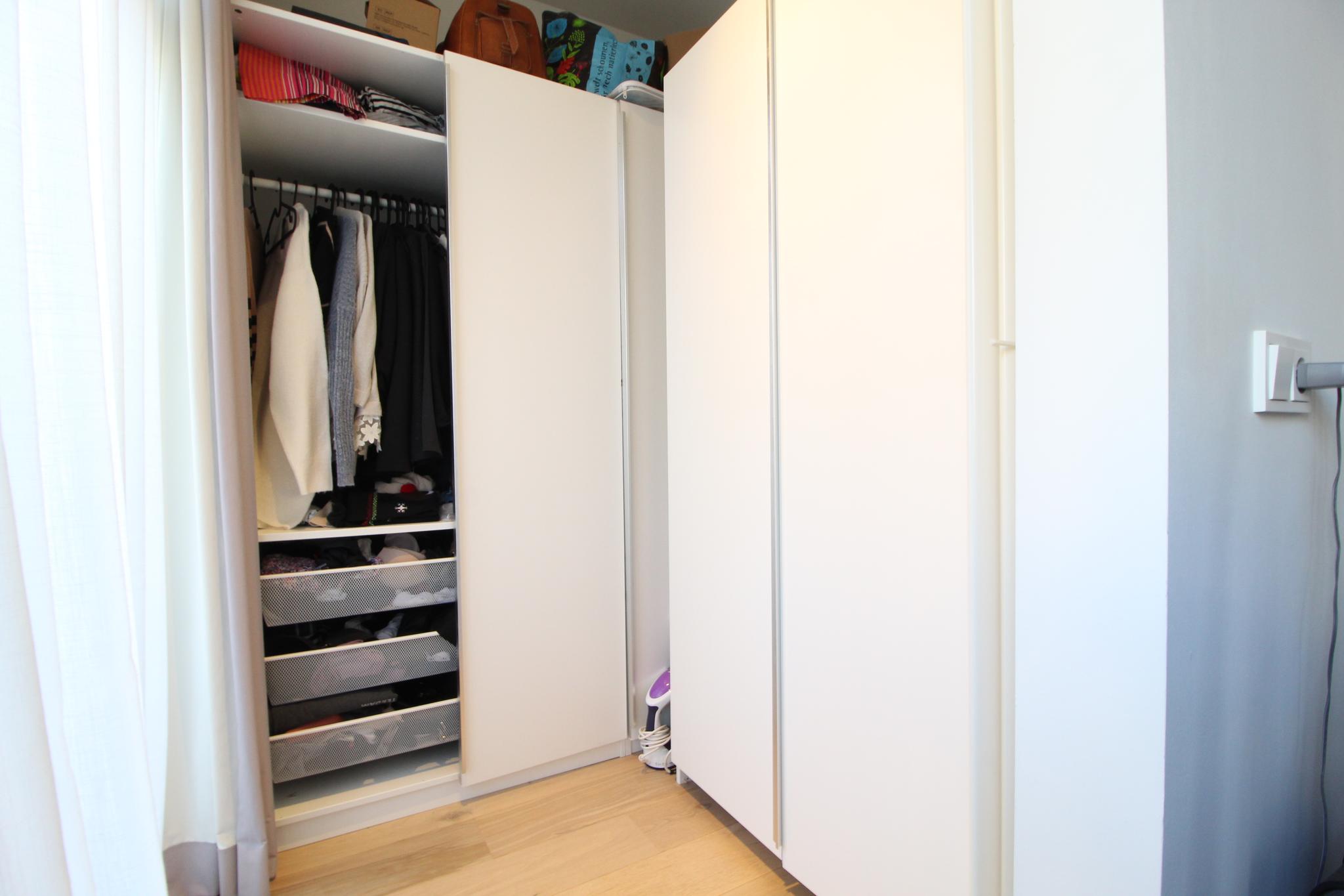 De slaapkamer is gelegen aan de achterzijde van de woning en meten respectievelijk circa 11 m² (4.21 m x 2.66 m). Vanuit de slaapkamer heeft u toegang tot een ruimte voorzien van ruime kledingkasten. Tevens is vanuit de slaapkamer het balkon aan de achterzijde van de woning te bereiken. Dit zonnige balkon meet circa 9,5 m² en is gelegen op het westen.