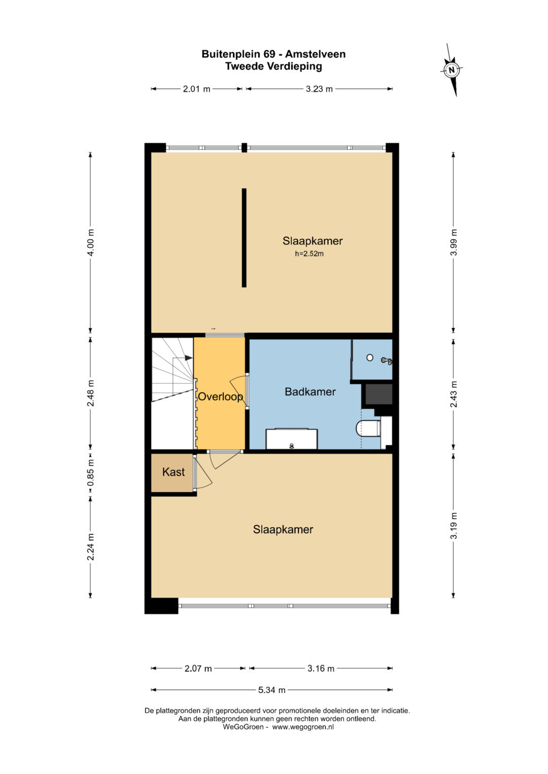 * Woning is verdeeld over de bovenste 2 woonlagen dus géén bovenburen;