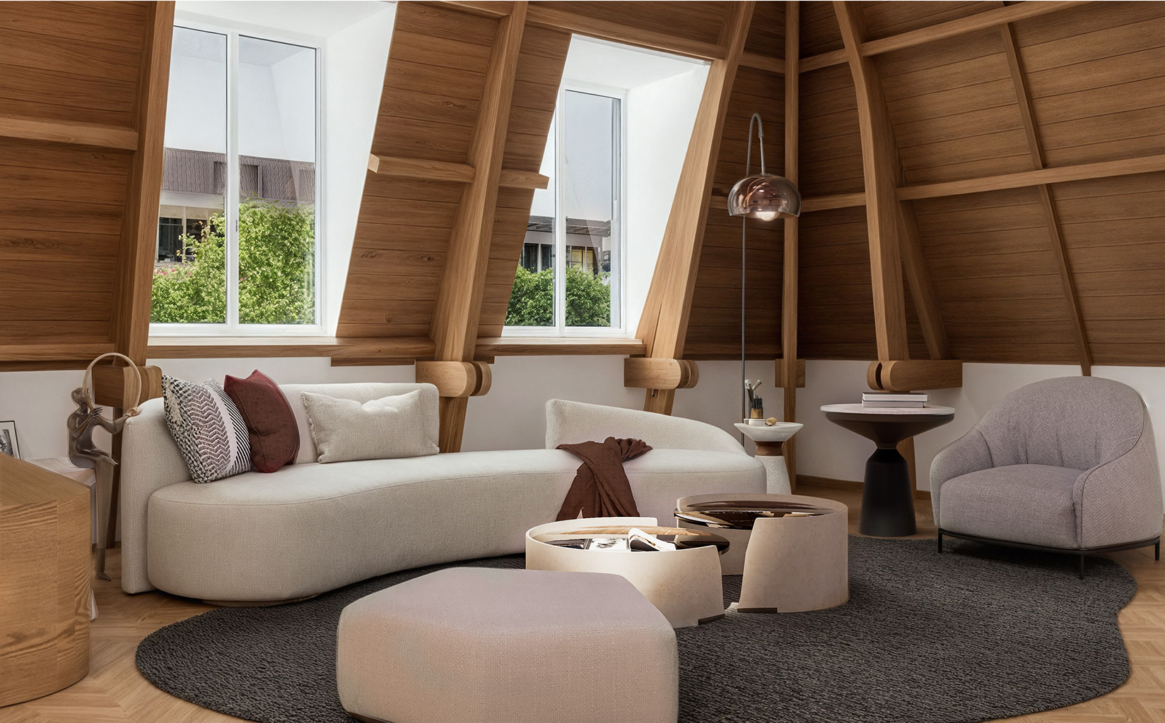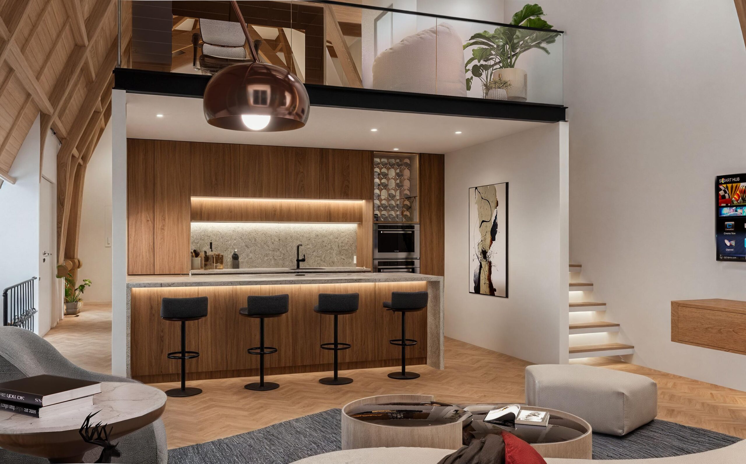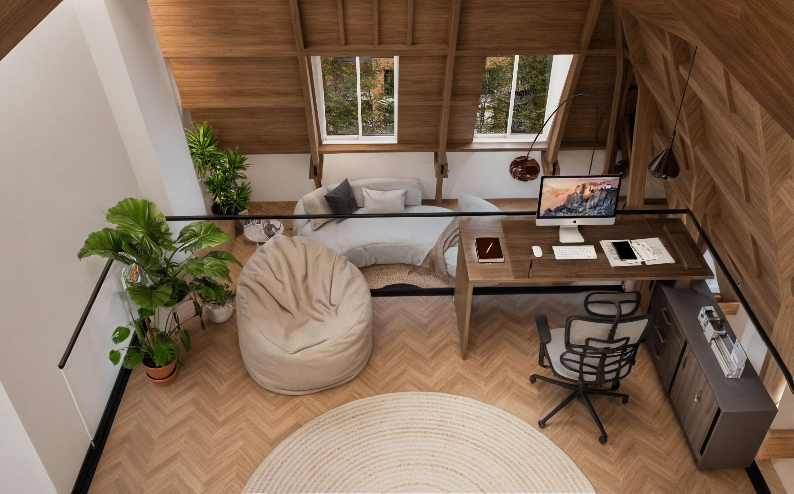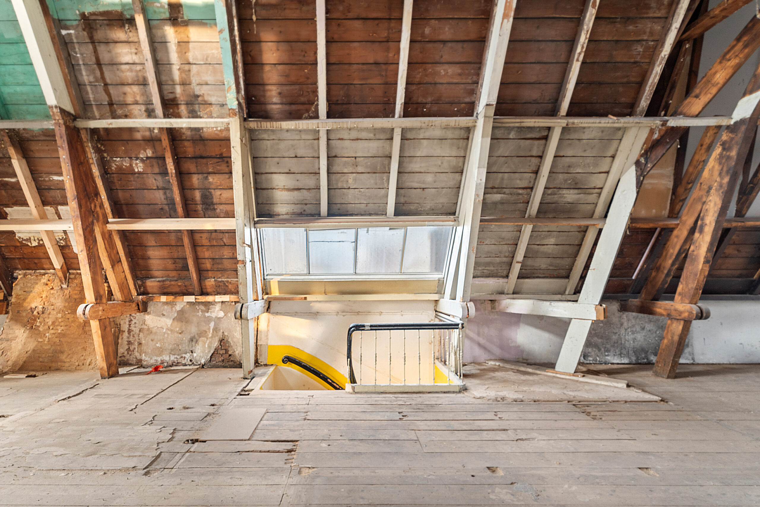 Grote open ruimte wat zich kenmerkt door de unieke nekhoogten en de fraaie balkenconstructies. De nekhoogte aan de voorzijde is circa 7.50 m en de nekhoogte aan de achterzijde circa 5.40 m.