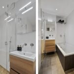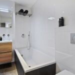 - Badkamervoorzieningen Ligbad, toilet, wastafel, wastafelmeubel, inloopdouche, vloerverwarming