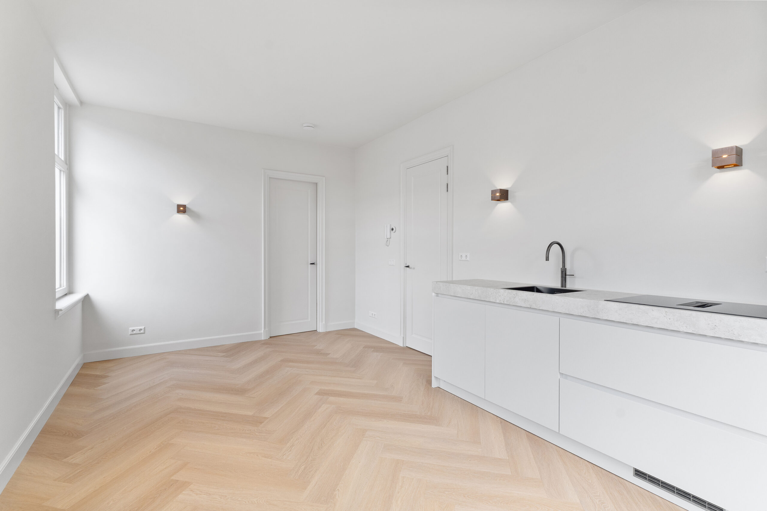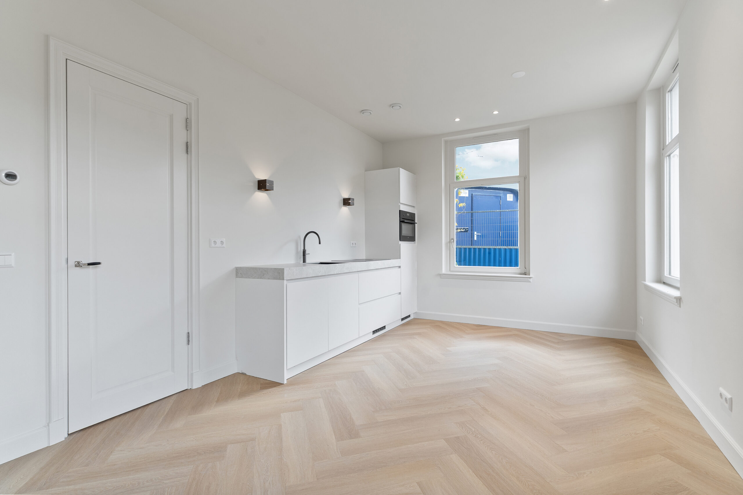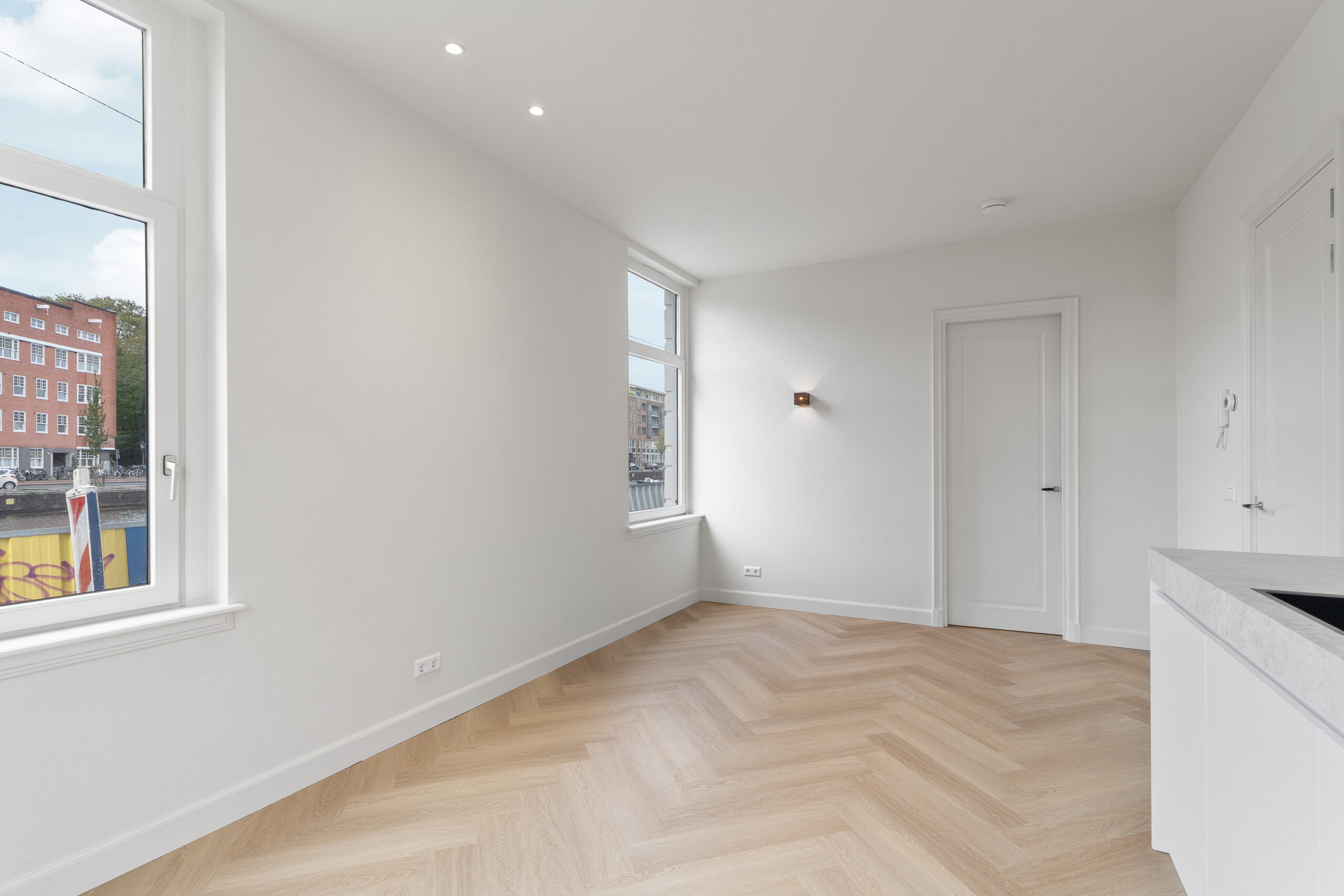 – Lichte woonkamer met grote ramen en plafondhoogte van 2,92 meter;