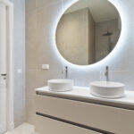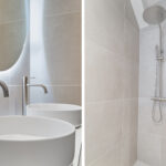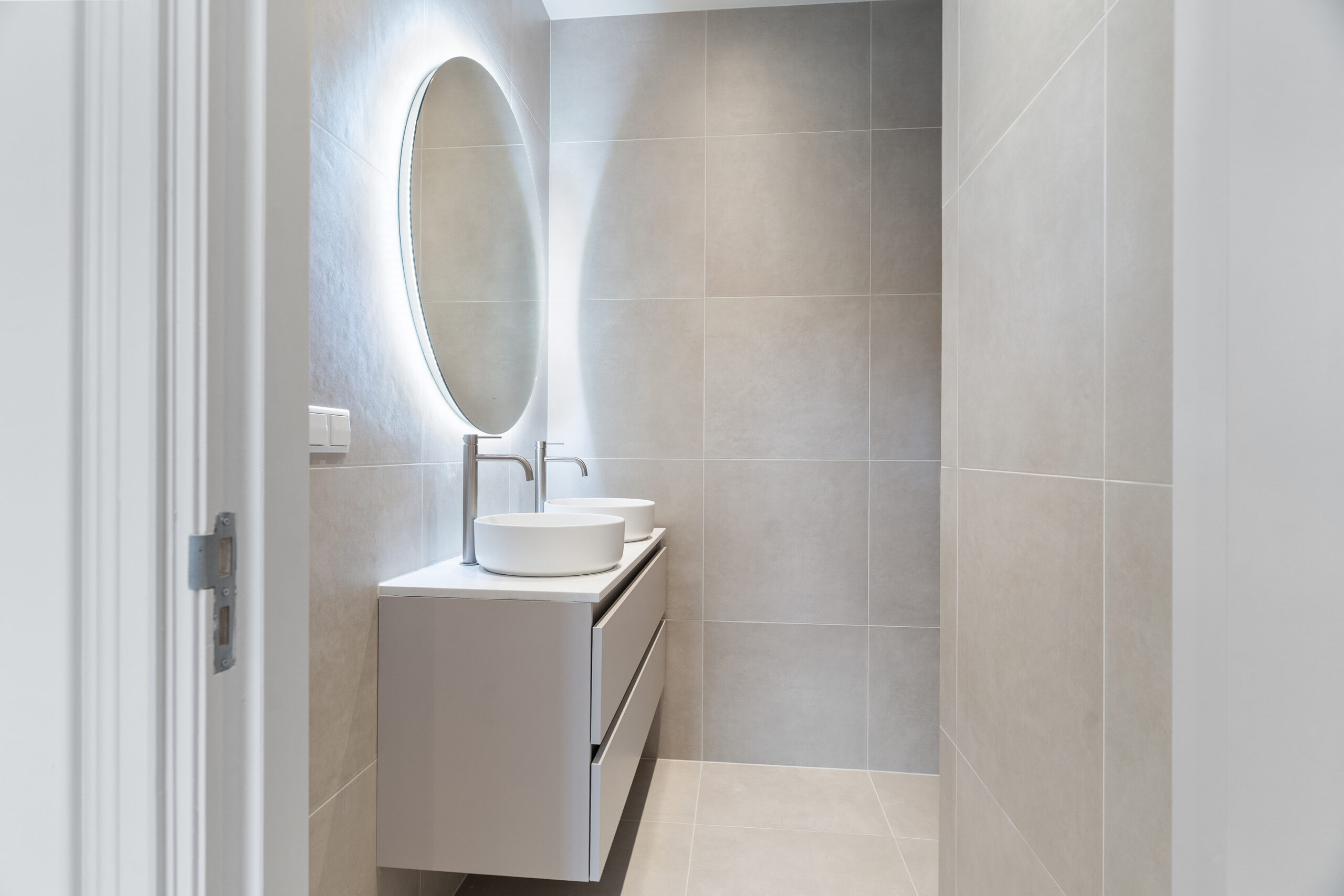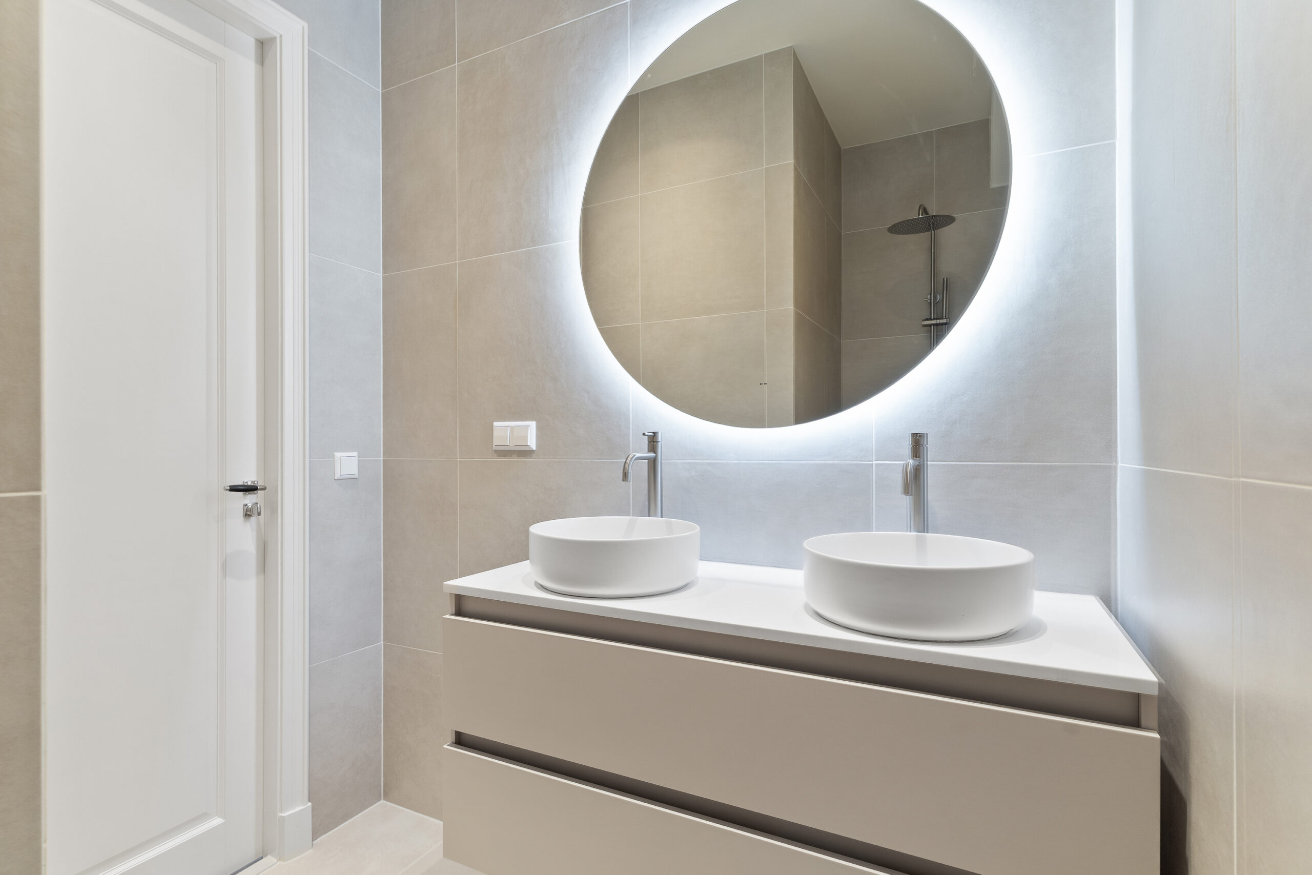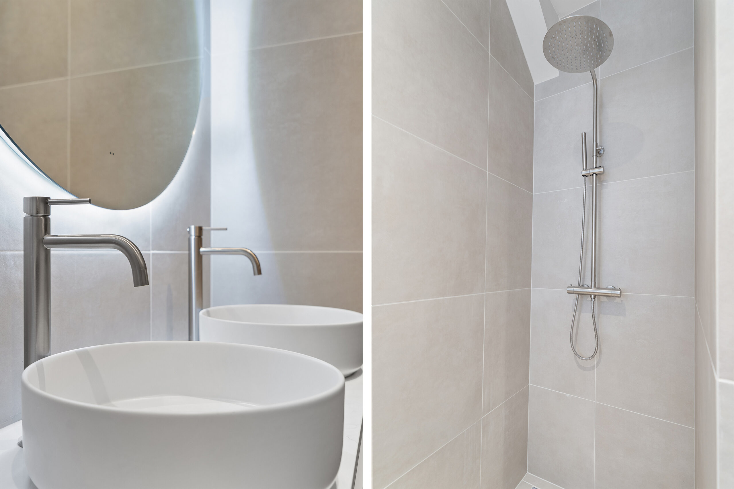 - Badkamervoorzieningen Douche, dubbele wastafel, wastafelmeubel, inloopdouche