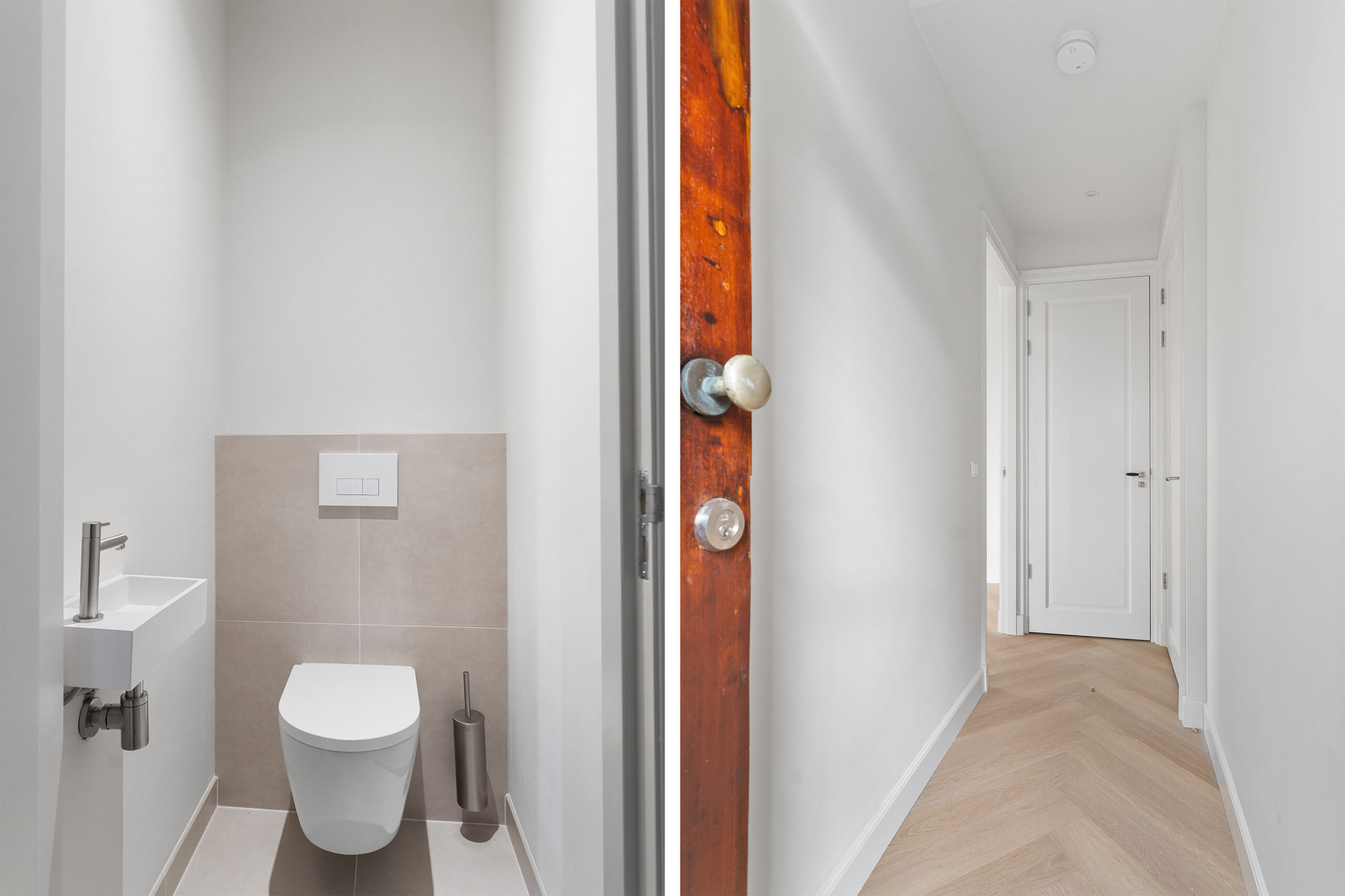 Via de entree kom je binnen in de hal, die toegang geeft tot alle vertrekken. De woonkamer is opvallend licht dankzij de grote ramen en heeft een plafondhoogte van maar liefst 2,92 meter, wat een ruimtelijk gevoel geeft. De open en luxe keuken inclusief Quooker is modern opgesteld en voorzien van inbouwapparatuur.