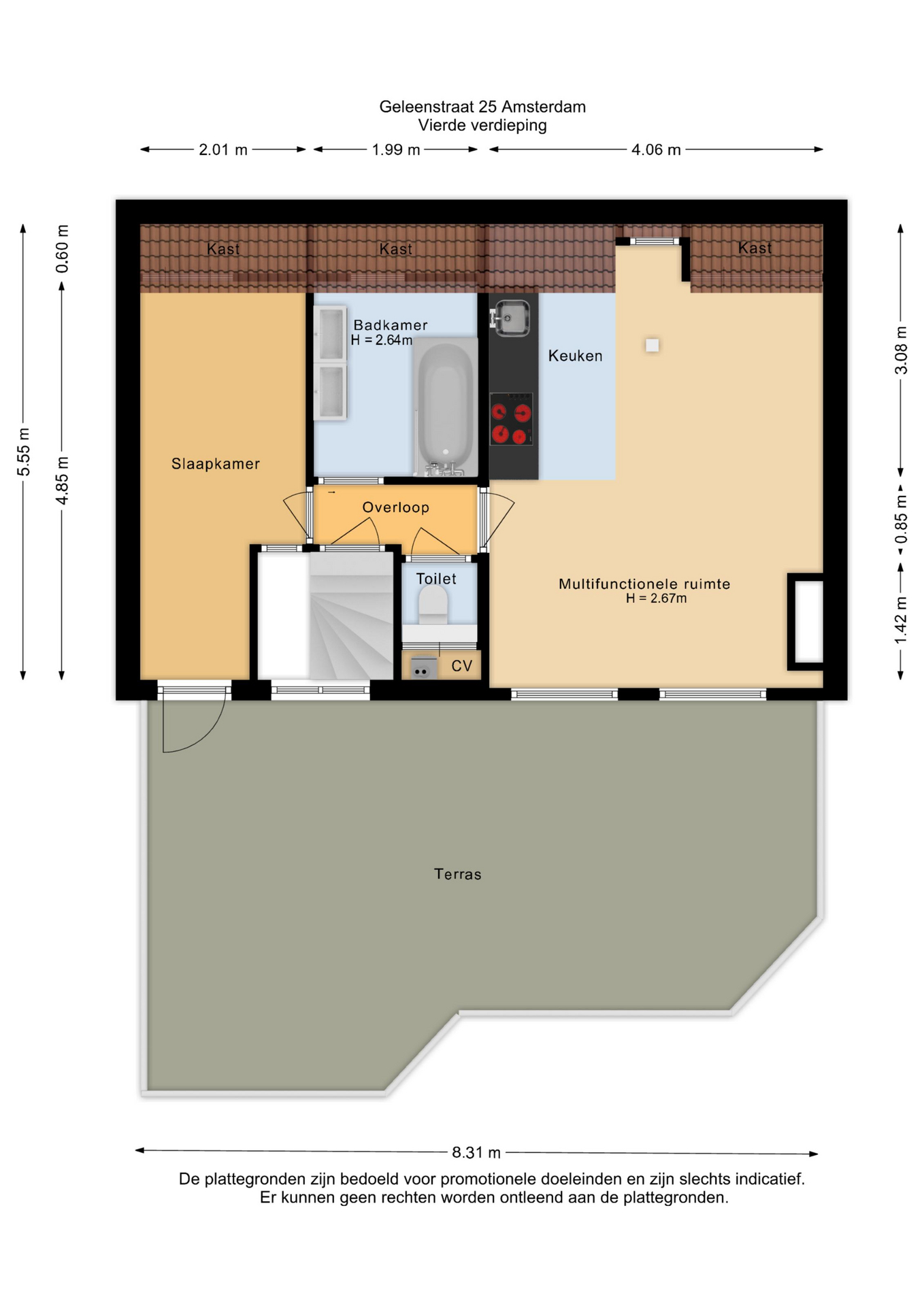 – Vierde verdieping is eventueel apart te verhuren (als volledig geëquipeerde woning)