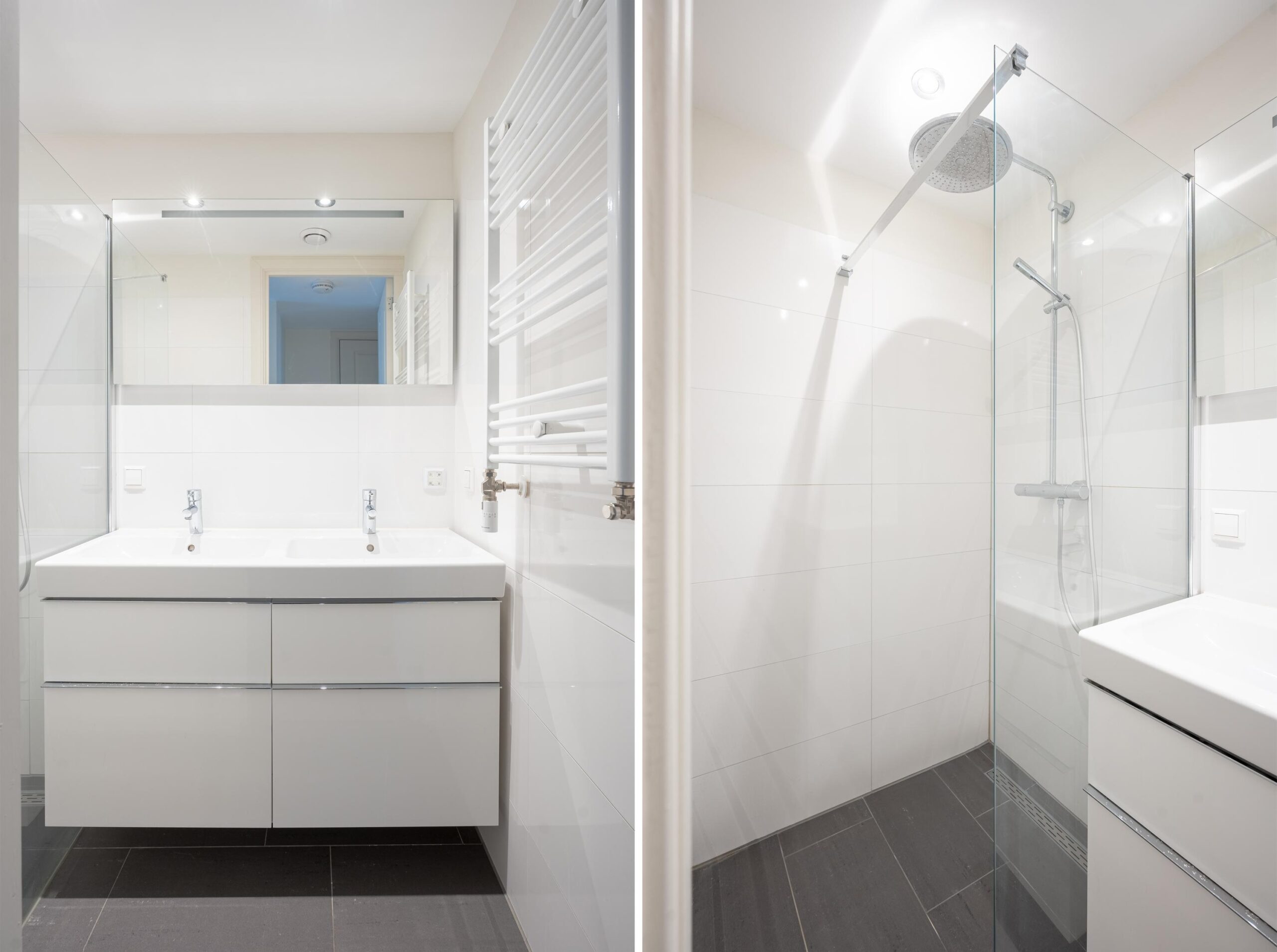 - Badkamervoorzieningen Dubbele wastafel, inloopdouche