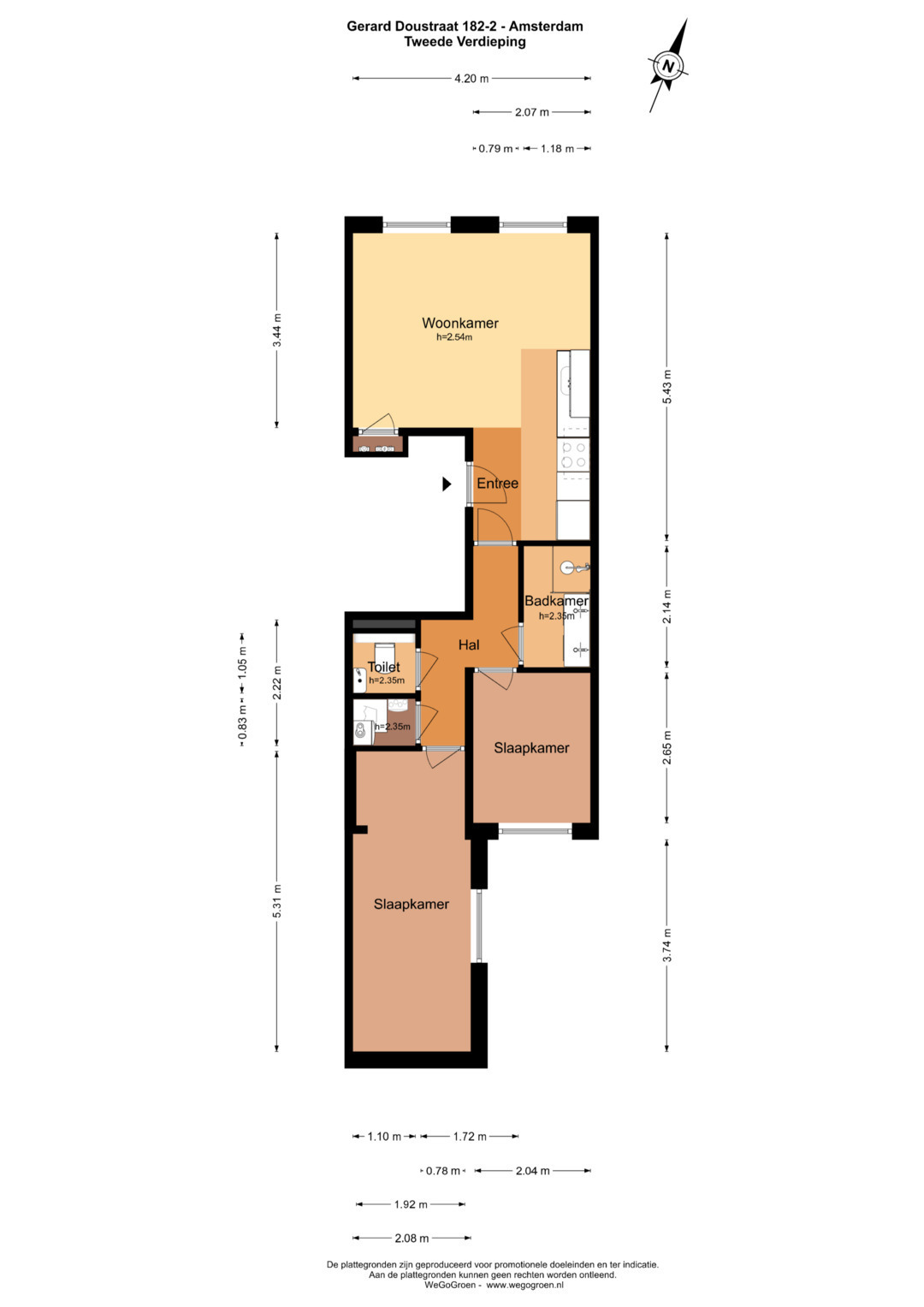 Entree van de woning op de tweede verdieping. De woonkamer met open keuken is gelegen aan de voorzijde van het appartement. De keuken is voorzien van Siemens inbouwapparatuur met onder andere een vaatwasser, 5-pits gaskookplaat met afzuigkap, combi oven/magnetron en een koelkast met 3 vrieslades. De ruime badkamer is voorzien van een inloopdouche, dubbele wastafel en design radiator. Het washok, met CV-installatie, is separaat. Beide slaapkamers zijn gelegen aan de achterzijde van de woning. Het betreft een volledig gerenoveerd appartement (renovatiejaar 2020). De gehele woning beschikt over volledig dubbel glas en een nette vloer. De elektra en de Cv-installatie zijn vernieuwd in 2020. Er is een energielabel A geregistreerd.