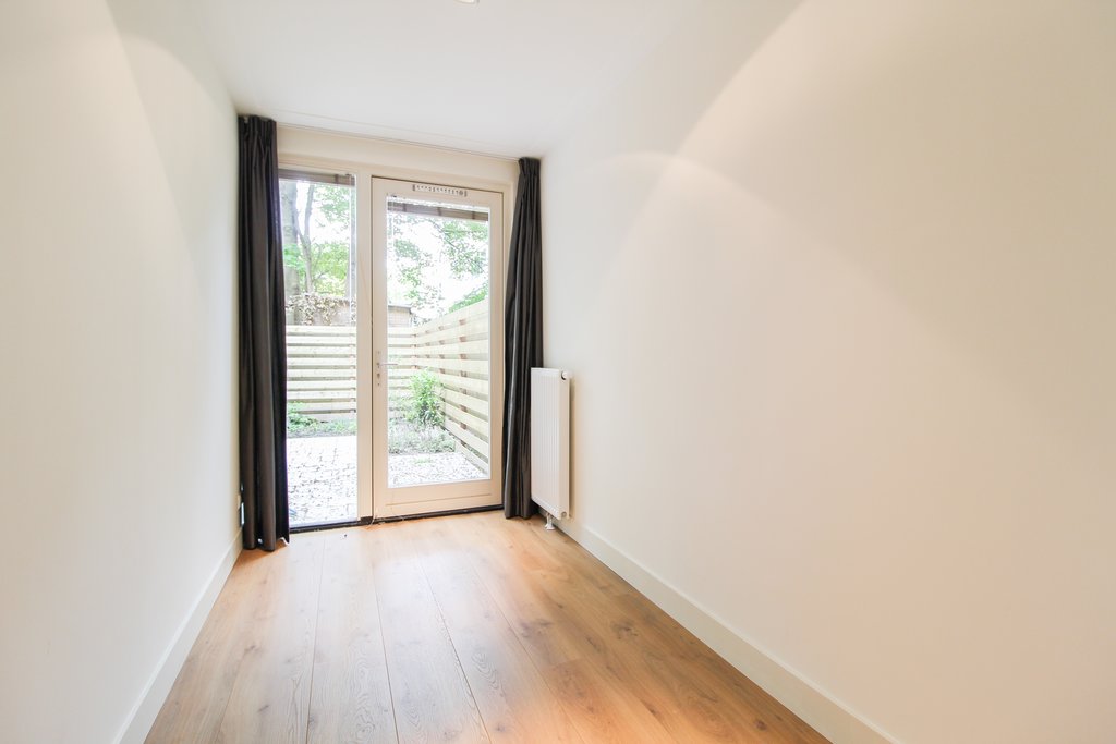 De woning heeft een eigen entree aan de straat. U komt binnen in een hal die toegang geeft tot alle vertrekken. Aan de achterzijde is de ruime woonkamer met open keuken. Hier heeft u via openslaande deuren toegang tot de royale tuin van 43 m² op het westen. De keuken is voorzien van alle gemakken zoals bijvoorbeeld een ijskast, vriezer, 4-pits inductieplaat met afzuigkap, vaatwasser en oven/magnetron combinatie. Centraal gelegen is de badkamer die is voorzien van inloopdouche, ligbad inclusief handdouche en dubbele wastafel met opberglades. Aan de voorzijde bevindt zich een slaapkamer van circa 9 m² en aan de achterzijde een slaapkamer van circa 7 m². Voorts heeft het appartement een separaat toilet en separaat washok.