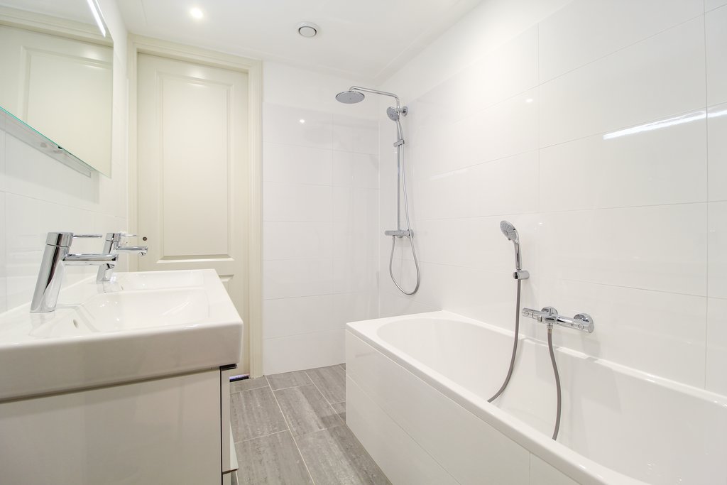 - Badkamervoorzieningen Ligbad, dubbele wastafel, wastafelmeubel, inloopdouche