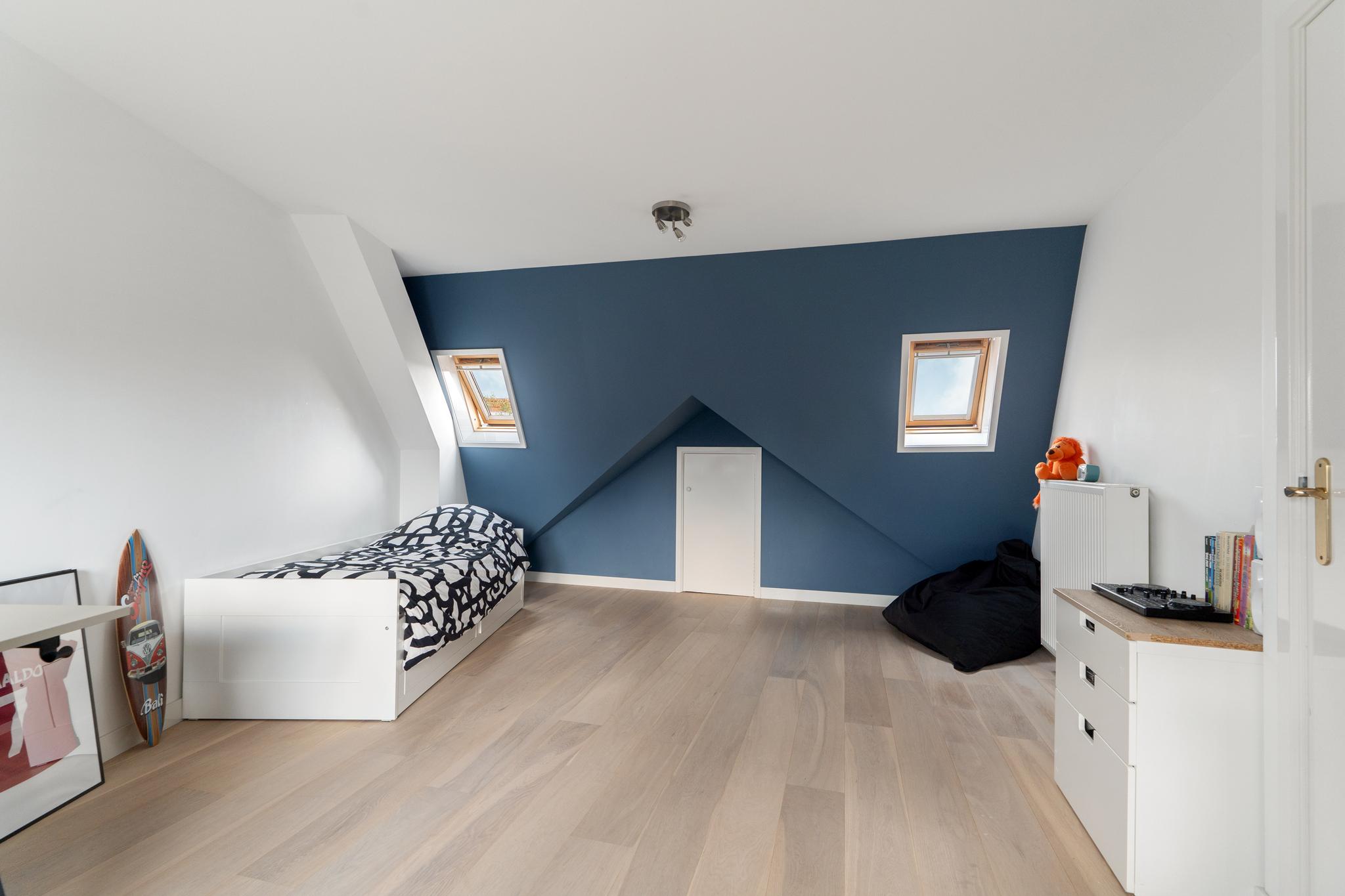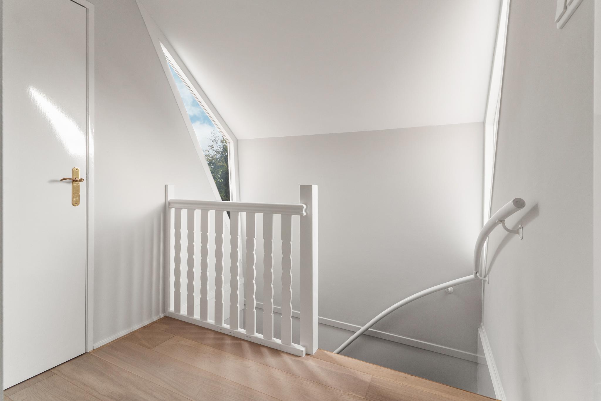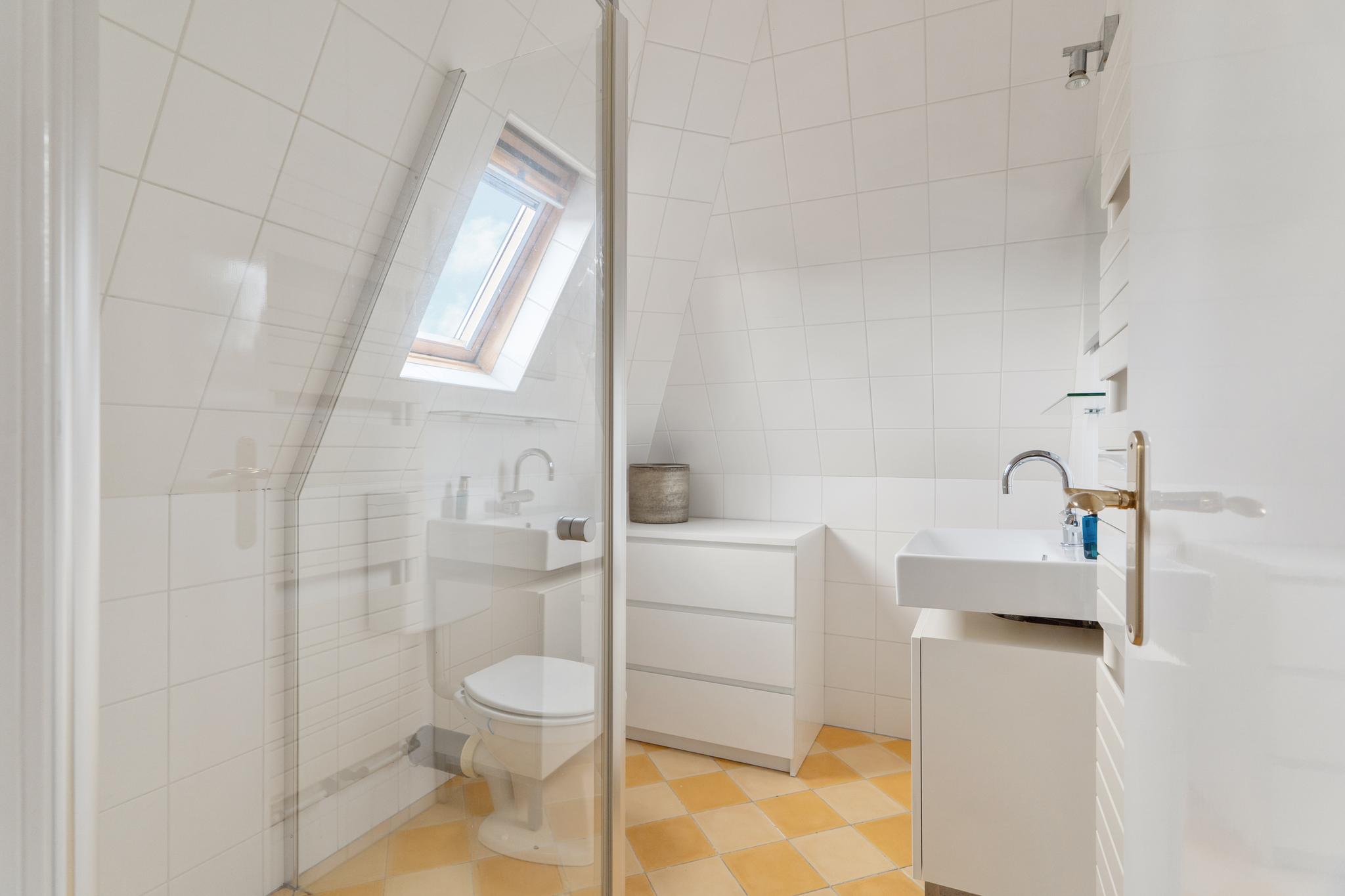Overloop, CV/wasruimte. Royale slaapkamer van circa 22 m² (3.80 x 5.80 m). De badkamer op deze verdieping beschikt over een toilet, een douche en een wastafel.