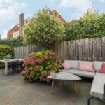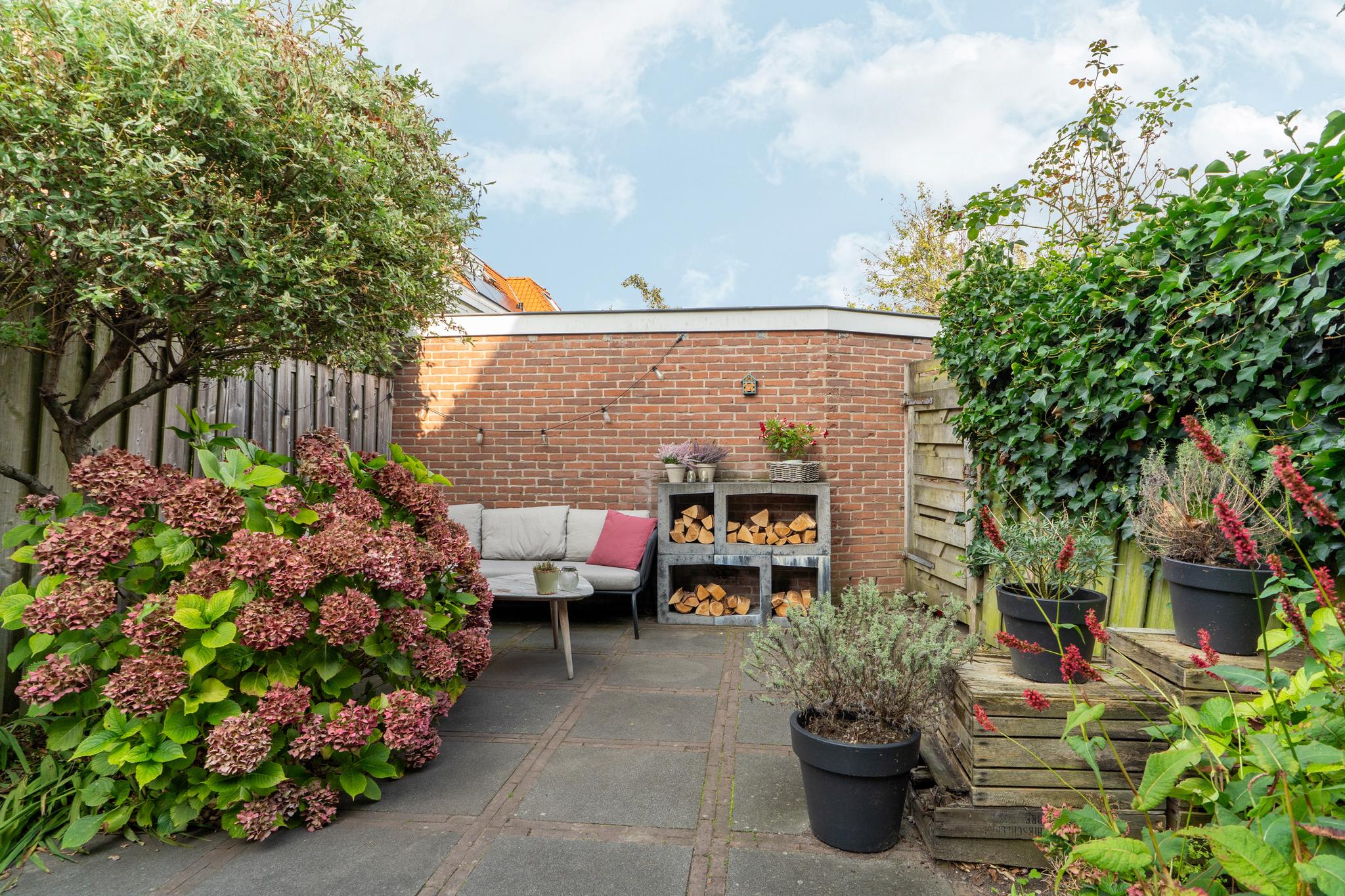 – Zonnige achtertuin van circa 54 m² met achterom;