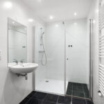 - Badkamervoorzieningen Douche, wastafel, wasmachineaansluiting