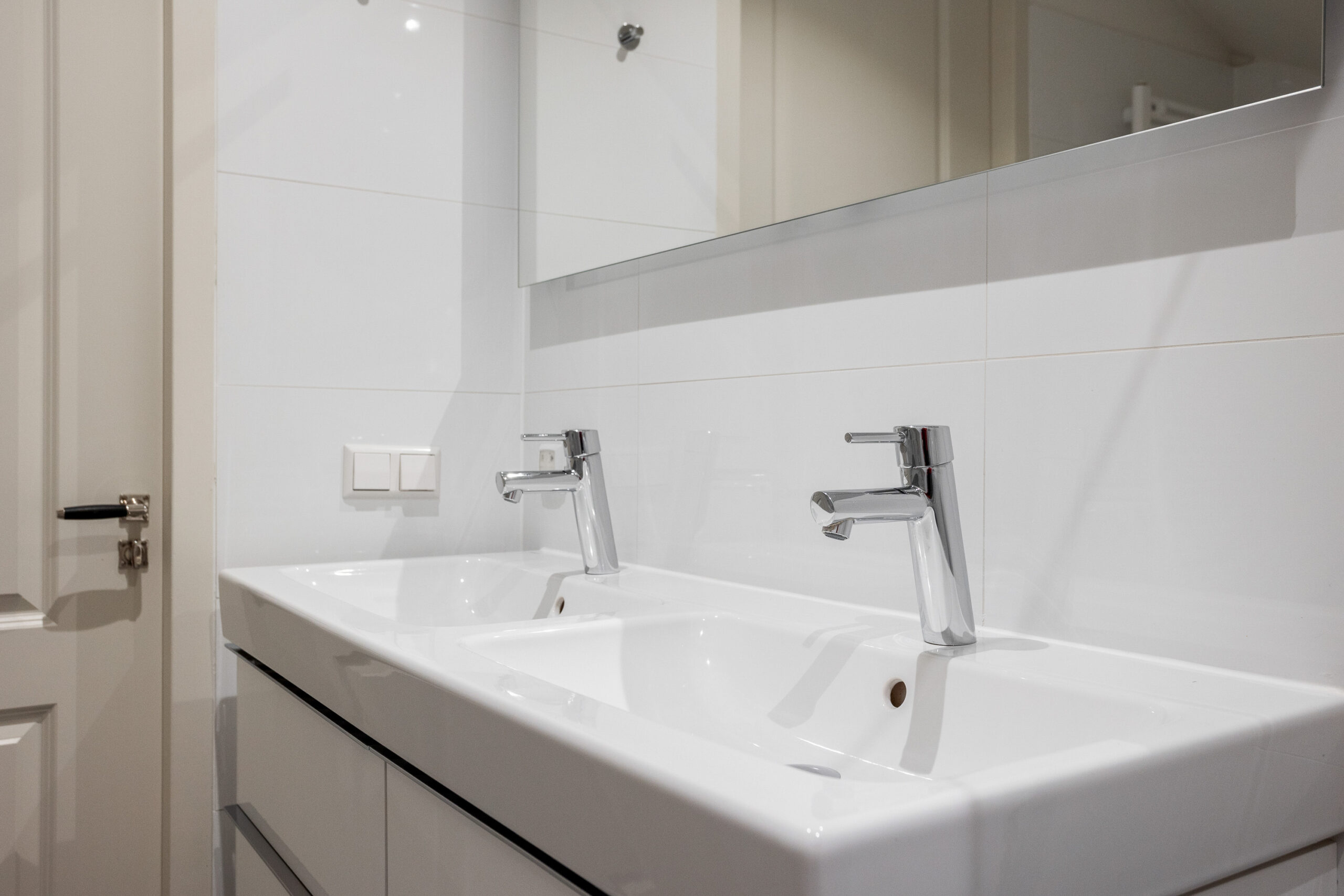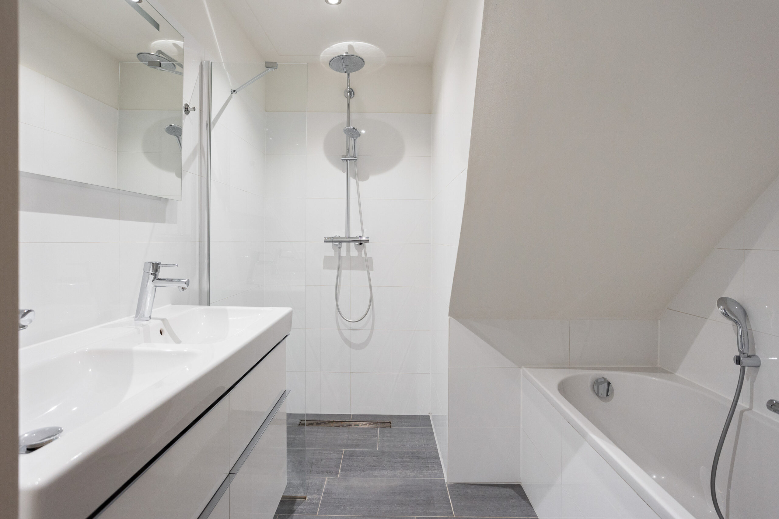- Badkamervoorzieningen Ligbad, dubbele wastafel, wastafelmeubel, inloopdouche
