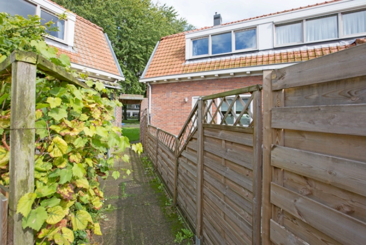 De separate, stenen berging van ca. 6 m² is bereikbaar via de tuin of via een achterom met toegangsdeur tussen de hoekwoningen.