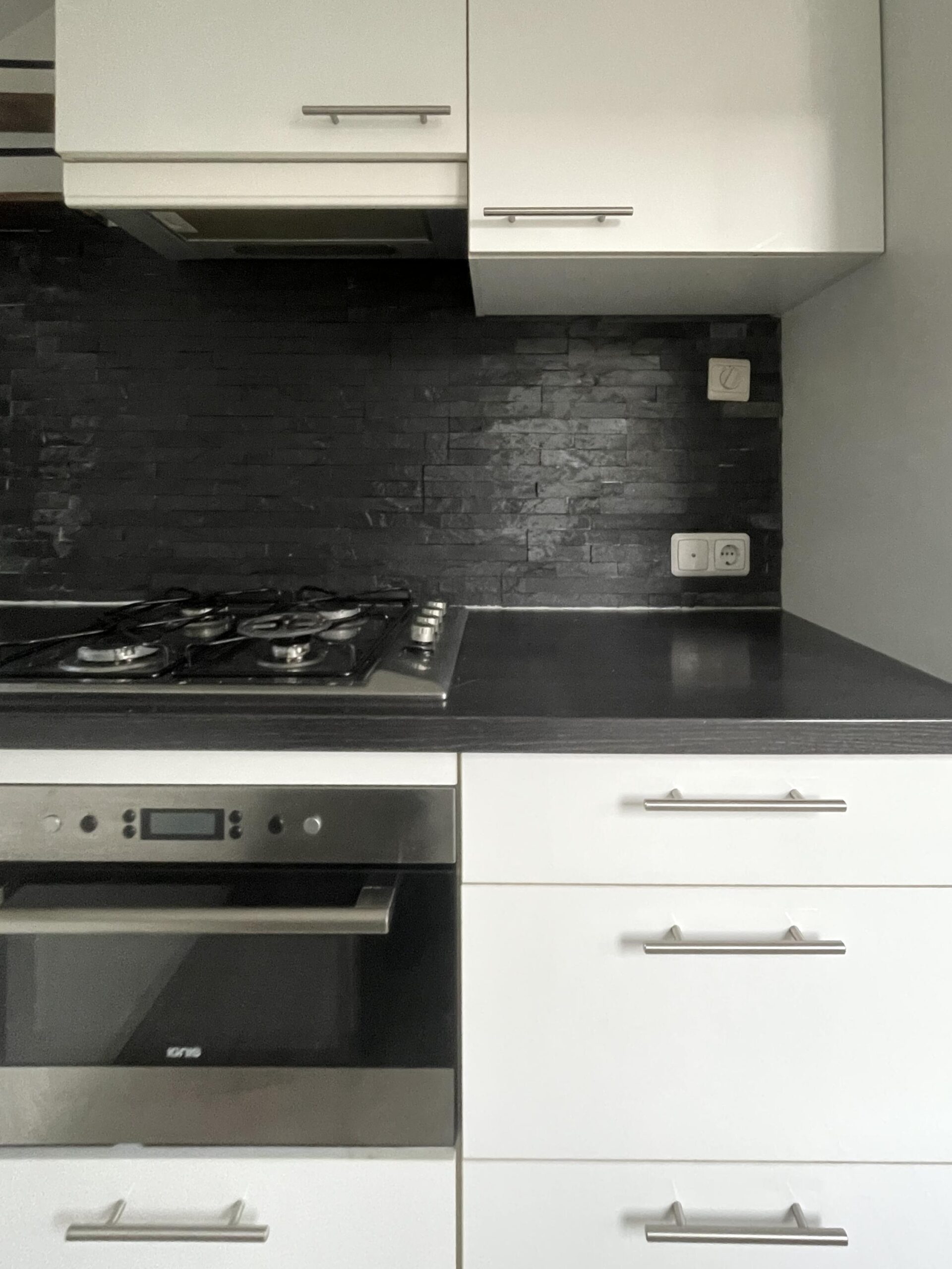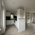 De doorzonwoonkamer van circa 21 m² is voorzien van een half open keuken en biedt toegang tot de achtertuin. De keuken is uitgerust met een vaatwasser, koel/vriescombinatie, een 4-pits gasfornuis en een combi-oven.