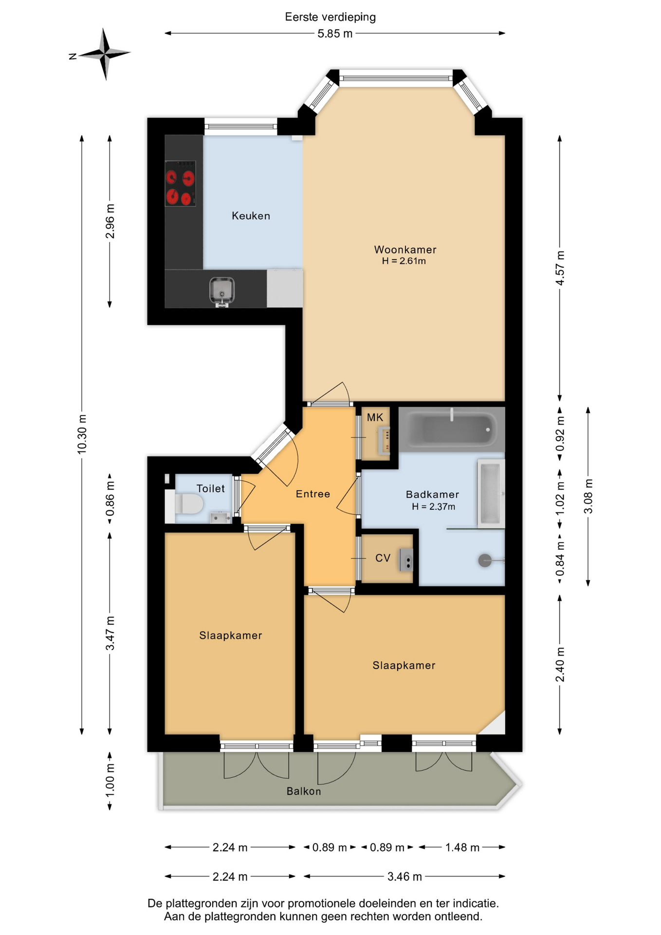 – Gerenoveerde bovenwoning van circa 56 m² (meetrapport beschikbaar);