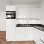 De centrale hal verschaft toegang tot alle vertrekken. Via de hal is een separate wasruimte bereikbaar. Aan de voorkant van het appartement ligt de woonkamer met half open keuken. De keuken is voorzien van Siemens inbouwapparatuur met o.a. een vaatwasser, 4-pits inductie kookplaat incl. geïntegreerde afzuiging, combi oven/magnetron en een koel/vriescombinatie.