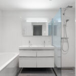 - Badkamervoorzieningen Ligbad, dubbele wastafel, wastafelmeubel, inloopdouche