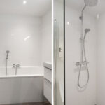 In het midden van de woning bevinden zich het separaat toilet met fontein en de badkamer. De badkamer is voorzien van inloopdouche, ligbad, wastafel met spiegel en een designradiator.