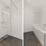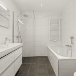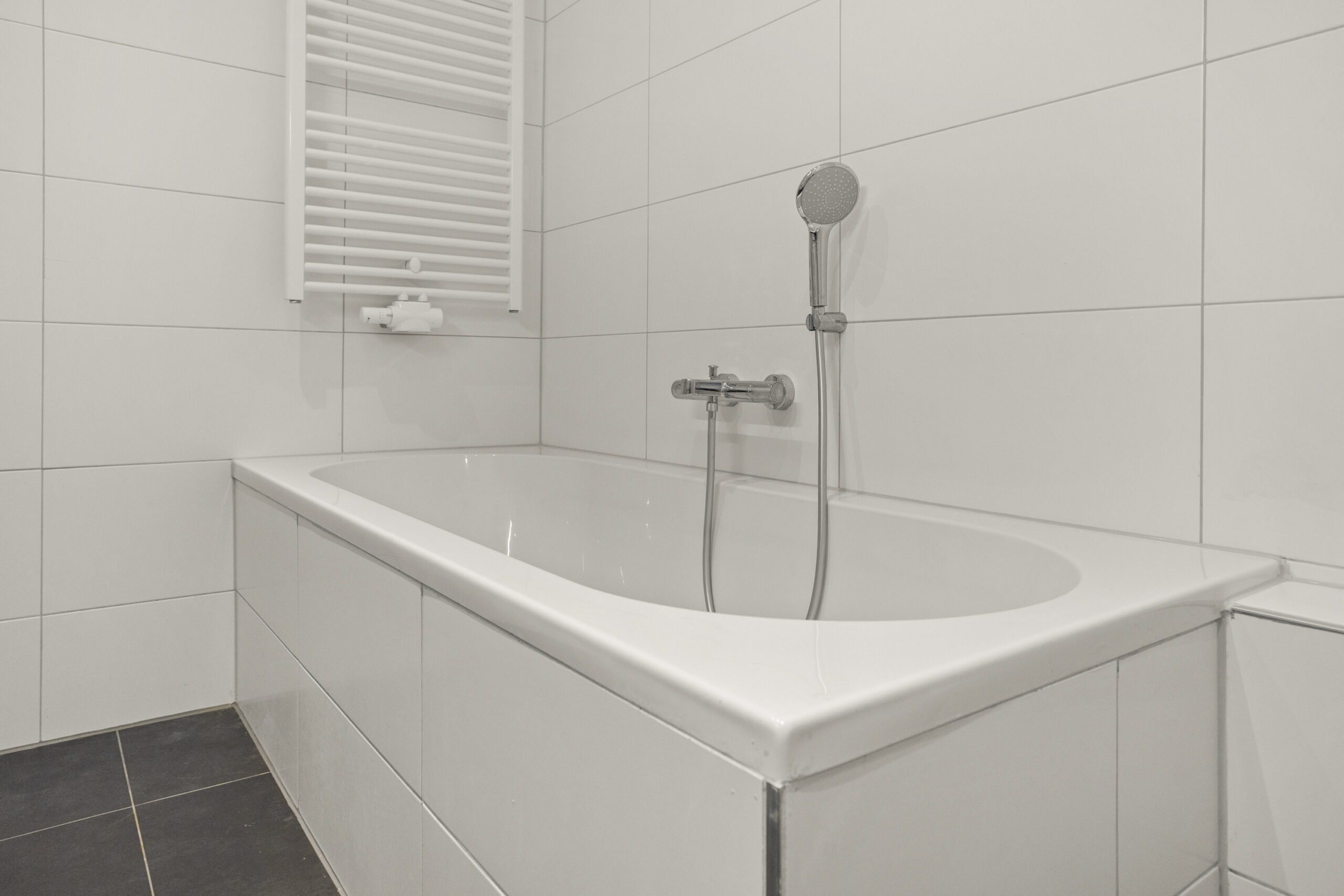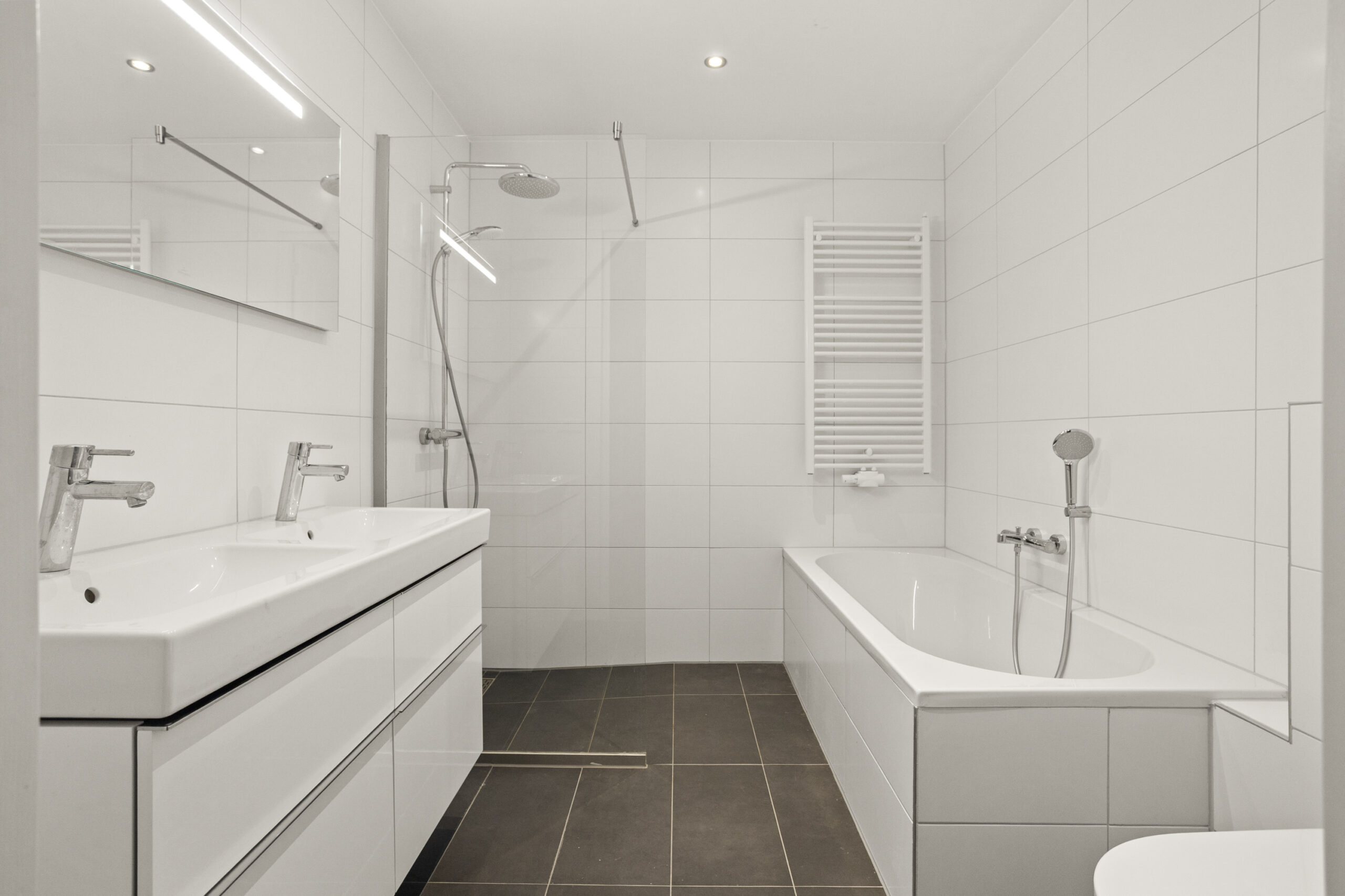 - Badkamervoorzieningen Ligbad, toilet, dubbele wastafel, inloopdouche