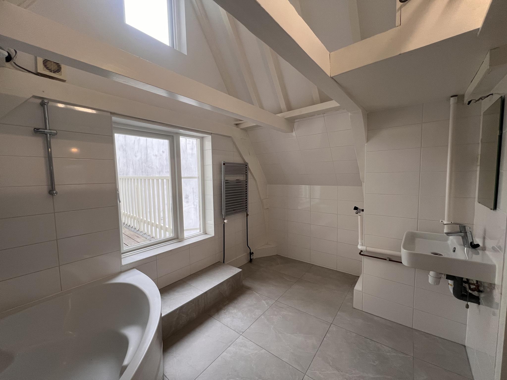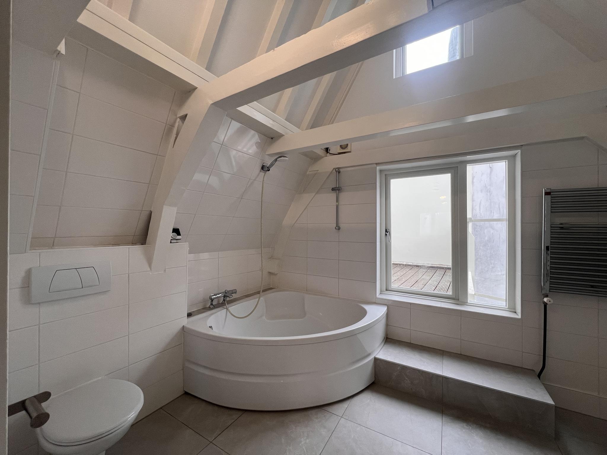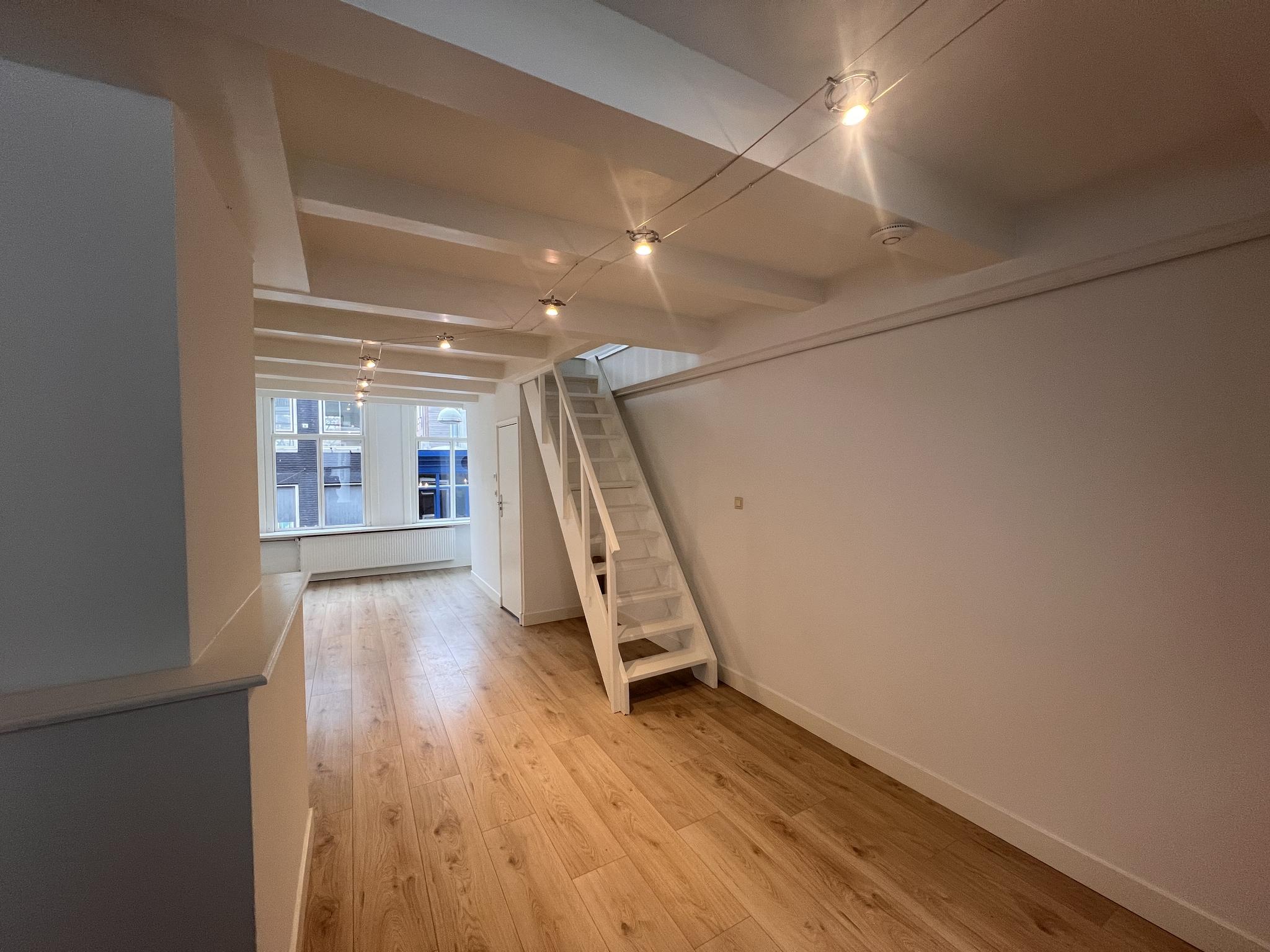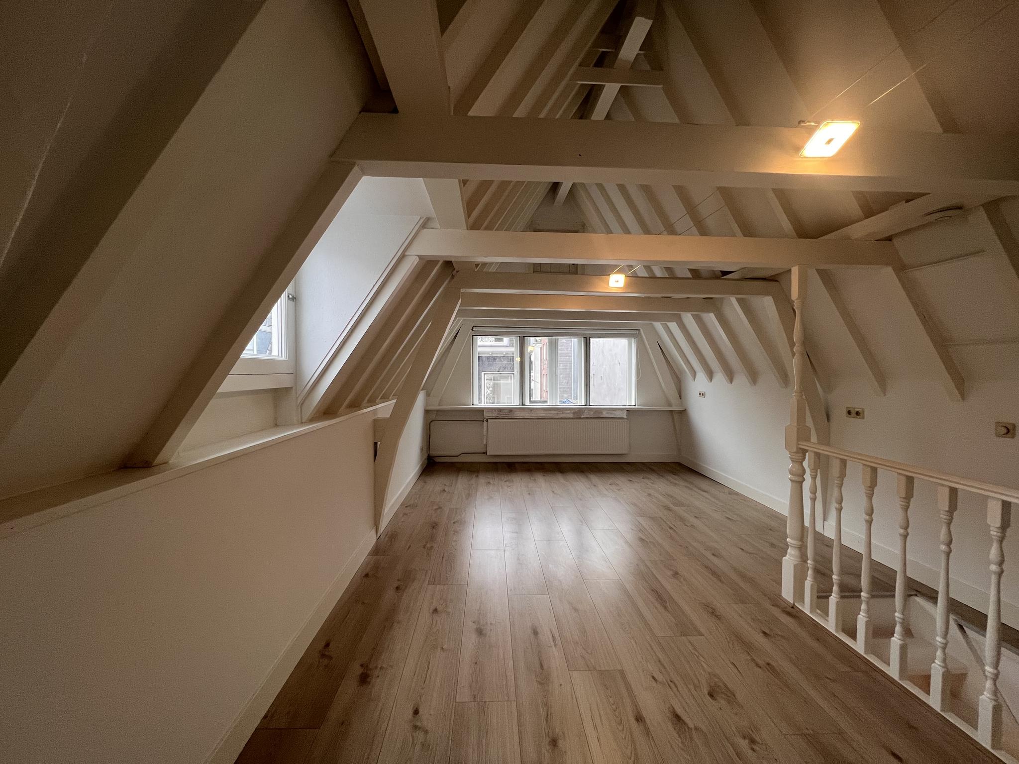 Via uw eigen entree bereikt u het trappenhuis die toegang verschaft tot het dubbele bovenhuis. Bij binnenkomst arriveert u in de lichte en speelse woonkamer. Via een karakteristieke houten deur bereikt u de keuken welke is gelegen aan de achterzijde van het appartement. De keuken is voorzien van een vaatwasser, combinatie oven -/magnetron, een 4-pits gaskookplaat, een afzuigkap, koelkast en vriezer. Middels de interne trap bereikt u de tweede verdieping. Via de slaapkamer van circa 23 m² is de nette badkamer bereikbaar welke is gelegen aan achterzijde. De badkamer is voorzien van een ligbad incl. handdouche, een wastafel met spiegel, toilet en aansluitingen voor de wasmachine. Het knusse dakterras van circa 7,4 m² bereikt u via de badkamer.