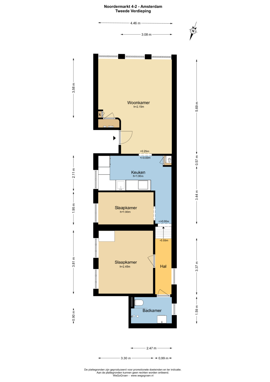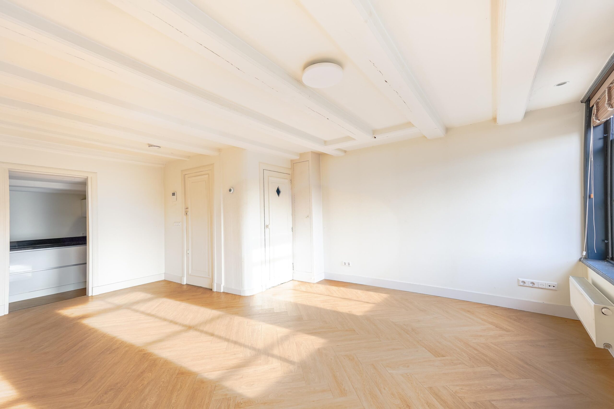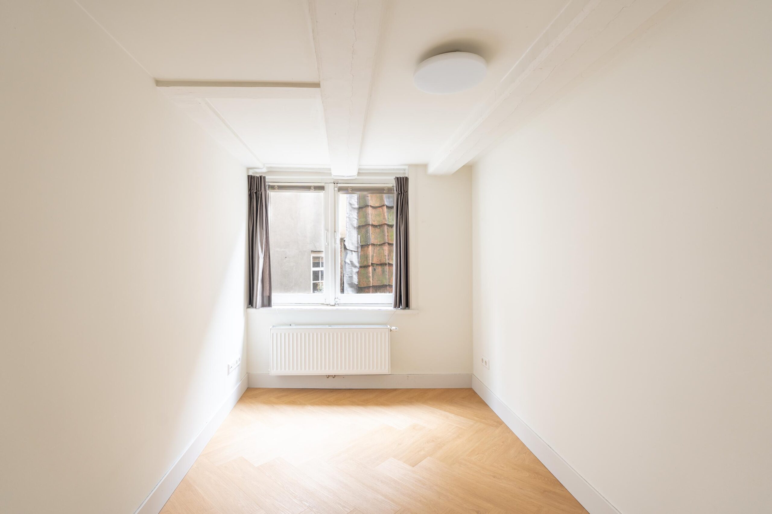 U bereikt de woning op de tweede verdieping. Bij binnenkomst arriveert u in de lichte, speelse woonkamer met uitzicht op de Prinsengracht en de Noordermarkt. De keuken is bereikbaar vanuit de woonkamer en is voorzien van een koelkast incl. vriesvak, een kookplaat met geïntegreerde afzuiging van AEG, een vaatwasser en een combinatie oven/magnetron. Tevens bevindt zich in de keuken een was/droogcombinatie. Middels de overloop bereikt u beide slaapkamers en de badkamer. De grote slaapkamer meet circa 12,6m² en de kleinere slaapkamer meet circa 6,5m². De complete badkamer is voorzien van een inloopdouche, wastafel met spiegel en zwevend toilet.