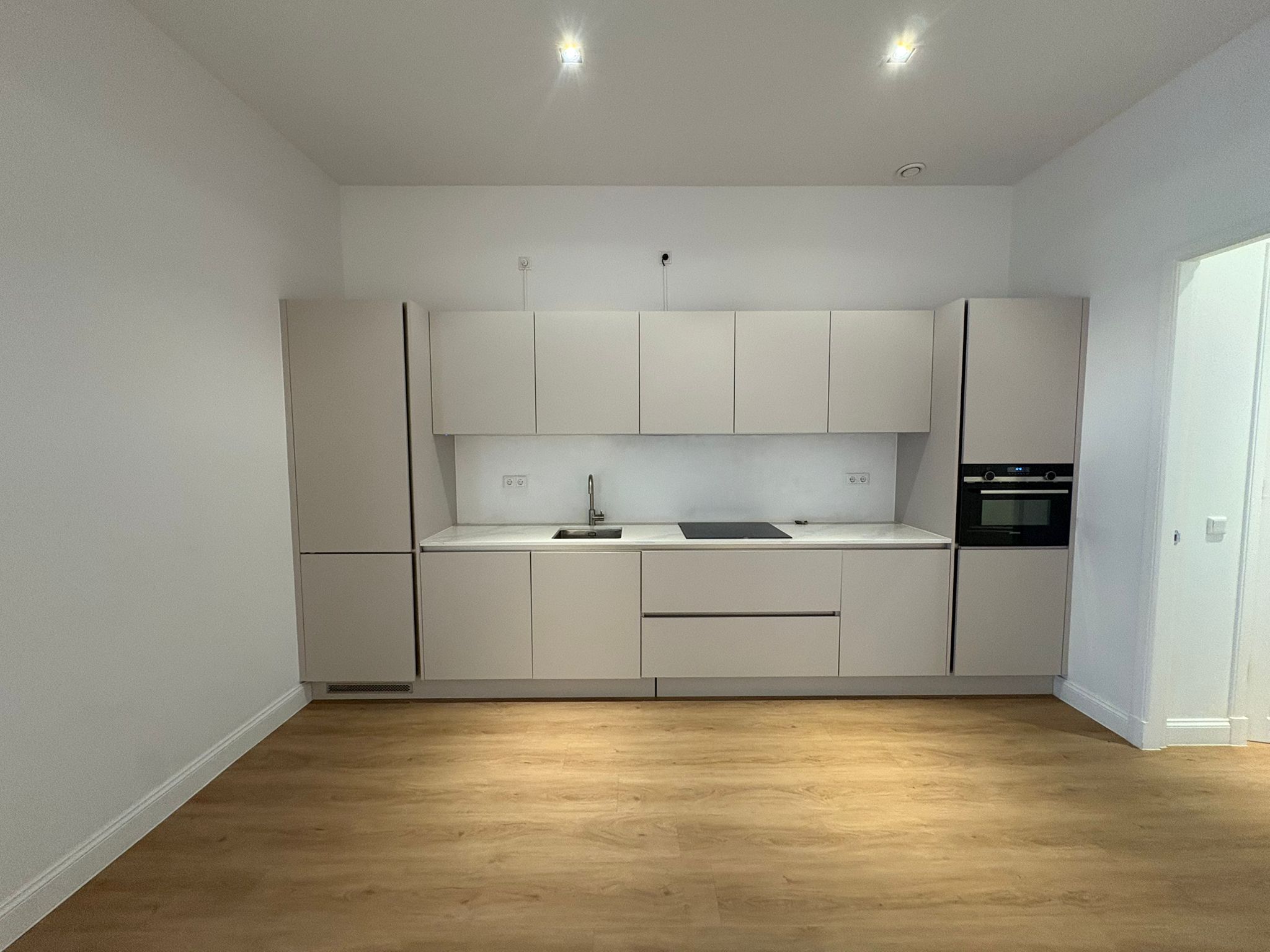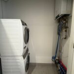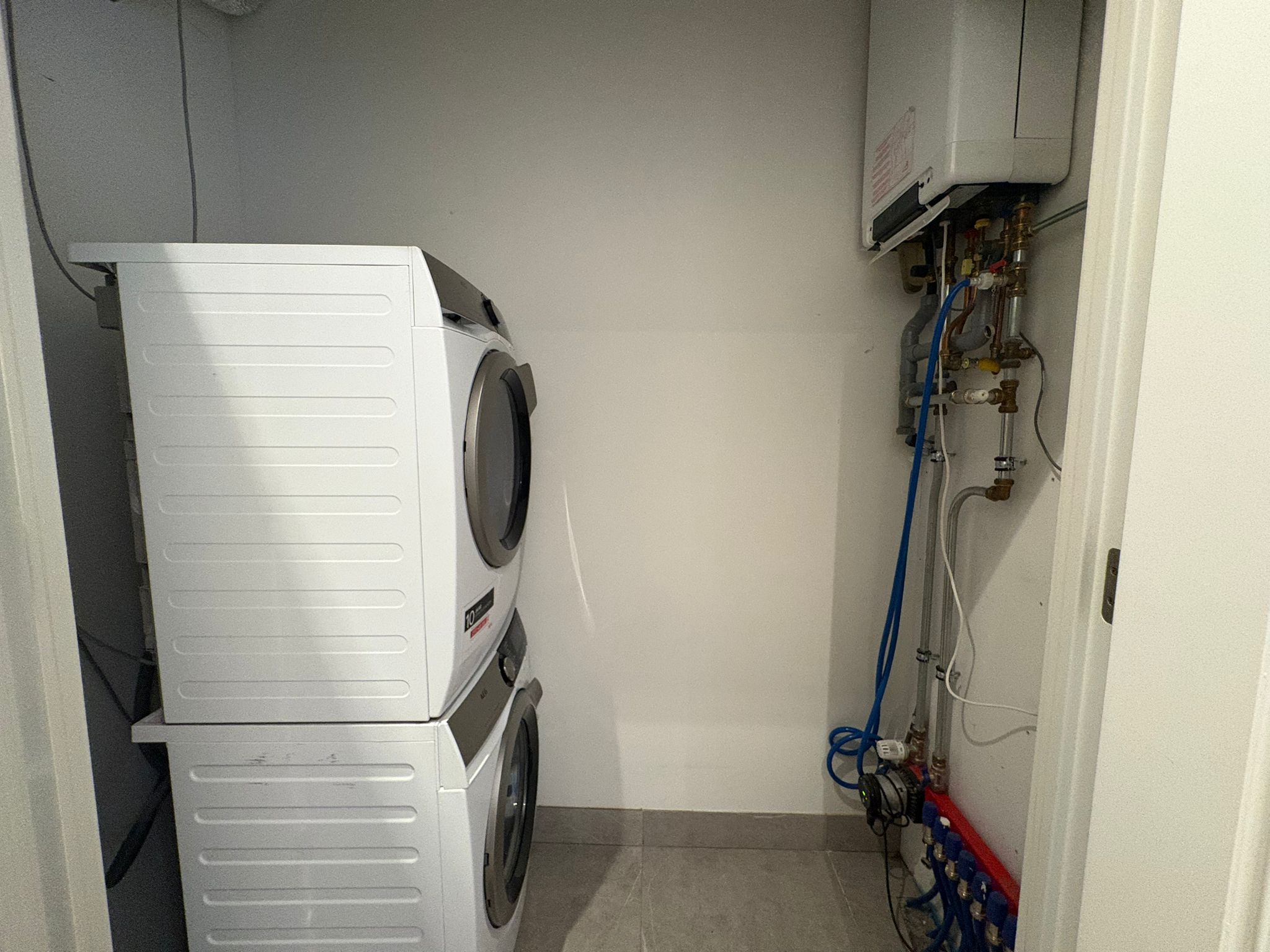 Aan de achterzijde vind je bovendien een kast met wasmachine en droger (aanwezig) en de stijlvolle badkamer.