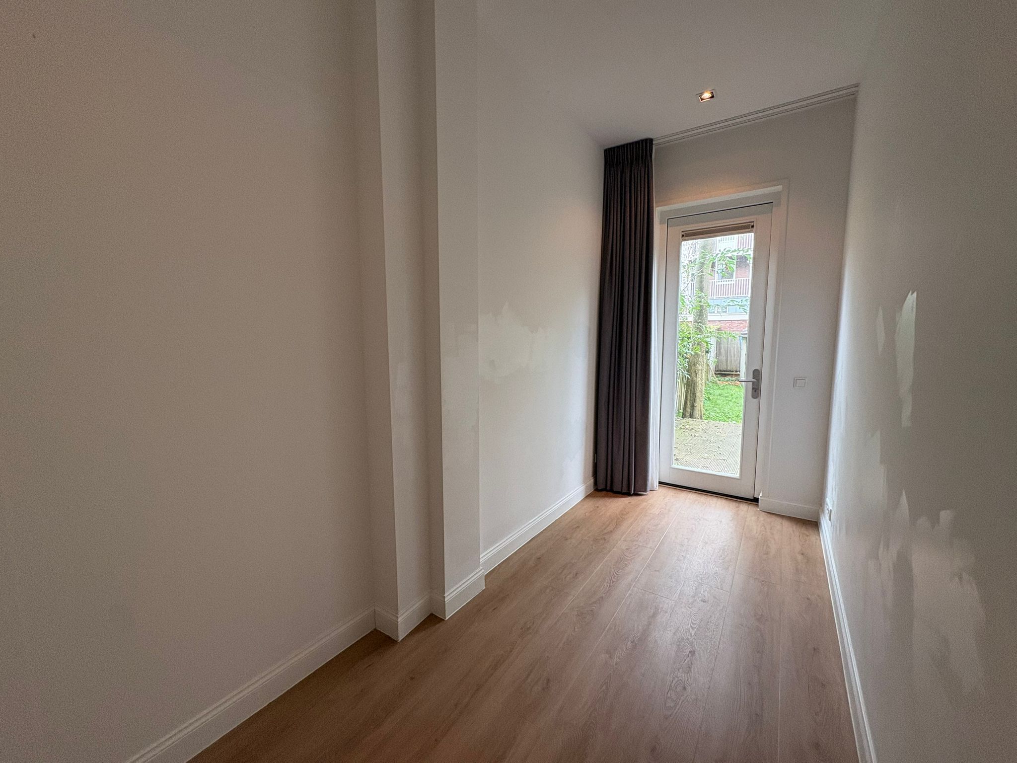 De moderne keuken is voorzien van alle gemakken en inbouwapparatuur, waaronder een inductiekookplaat, combi oven/magnetron, vaatwasser, koelkast met vriesvak en afzuigkap. Vanuit de keuken/eetkamer loop je door naar de achterzijde van de woning, waar zich twee slaapkamers bevinden. Beide slaapkamers van 13 m² en 7,5 m² bieden toegang tot de royale tuin van circa 100 m², een zeldzaam ruime buitenruimte midden in de stad.