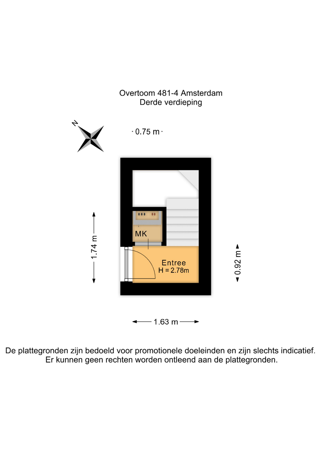 Open portiek. Gemeenschappelijk trappenhuis. De entree van de woning bevindt zich op de derde verdieping.