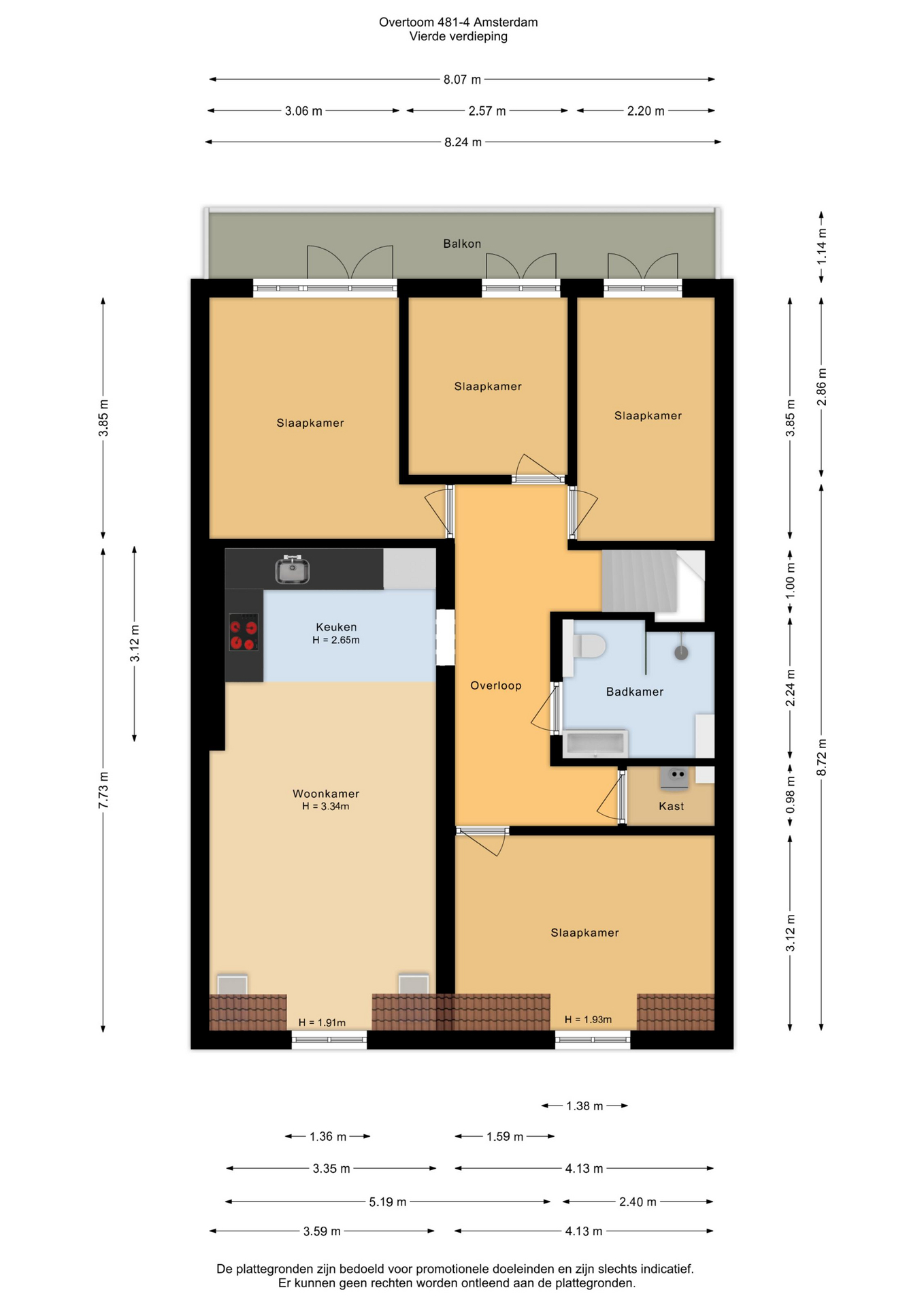 Dit ruime appartement is gelegen op de vierde verdieping en beschikt over maar liefst vier slaapkamers, een royale woonkamer en een balkon op het zuiden. Dankzij de praktische indeling is dit een ideale woning voor een gezin of woningdelers.