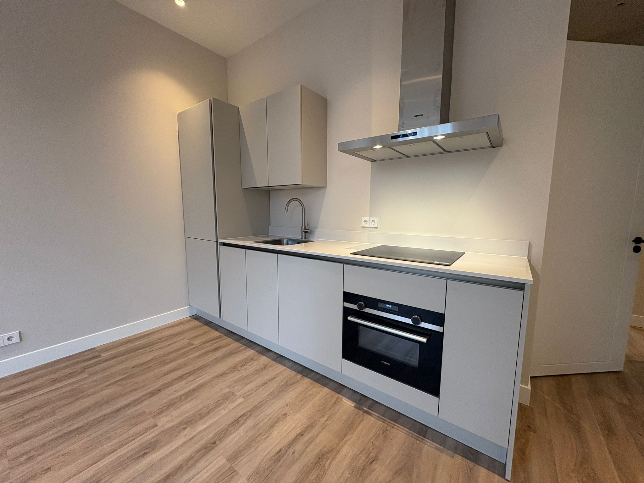De hal biedt toegang tot alle vertrekken. De lichte woonkamer ligt aan de voorzijde en beschikt over grote raampartijen met openslaande deuren naar een Frans balkon, waardoor er veel natuurlijk licht binnenvalt. De open keuken is strak vormgegeven en voorzien van diverse inbouwapparatuur van Siemens, waaronder een inductiekookplaat en een combi-oven/magnetron.