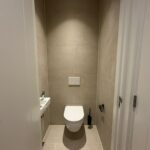 De woning beschikt over twee slaapkamers van circa 11,2 m² en 5,3 m², beide gelegen aan de rustige achterzijde. De moderne badkamer is voorzien van een inloopdouche, wastafelmeubel, een stijlvol vrijstaand ligbad en een aansluiting voor de wasmachine. Daarnaast is er een separaat toilet aanwezig.