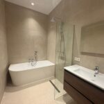 - Badkamervoorzieningen Ligbad, douche, wastafel, wastafelmeubel, inloopdouche, wasmachineaansluiting