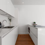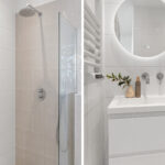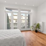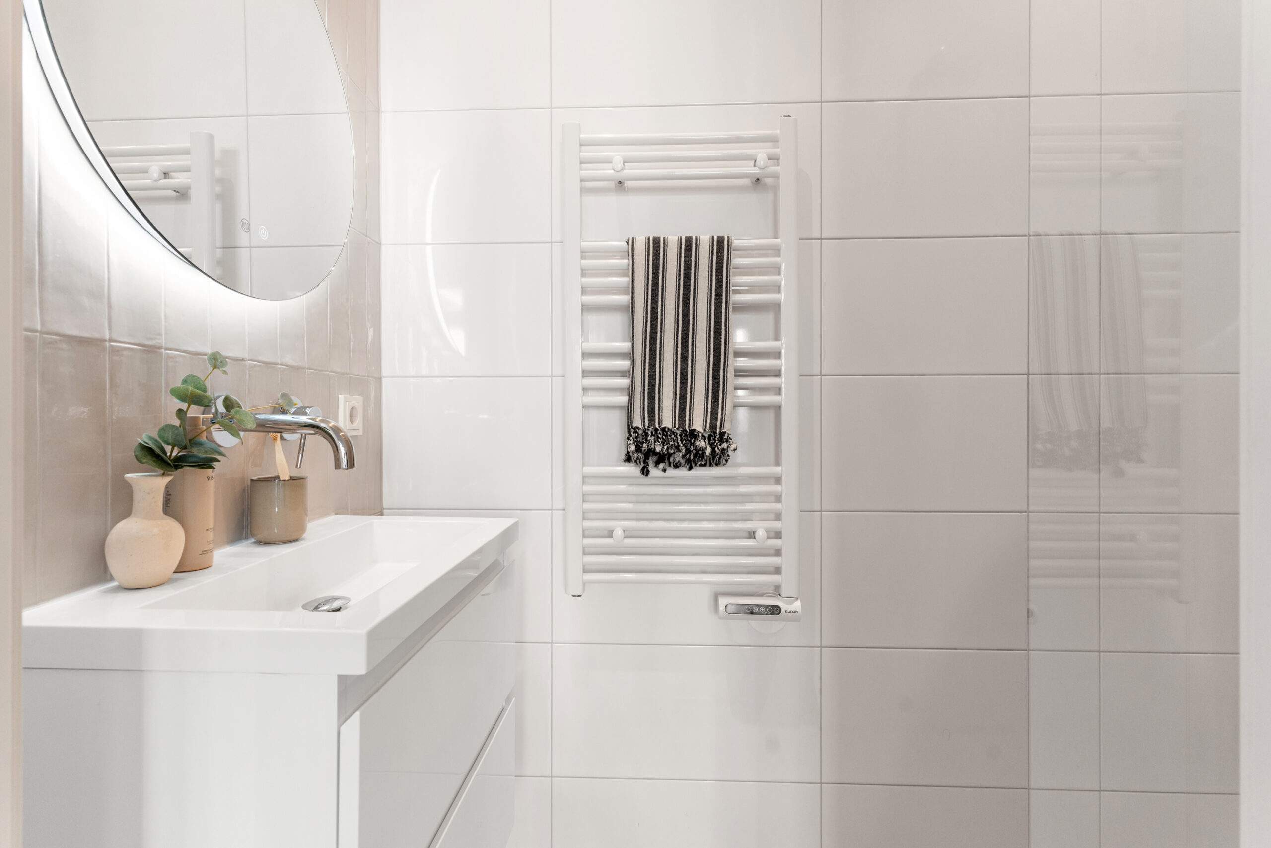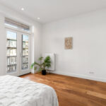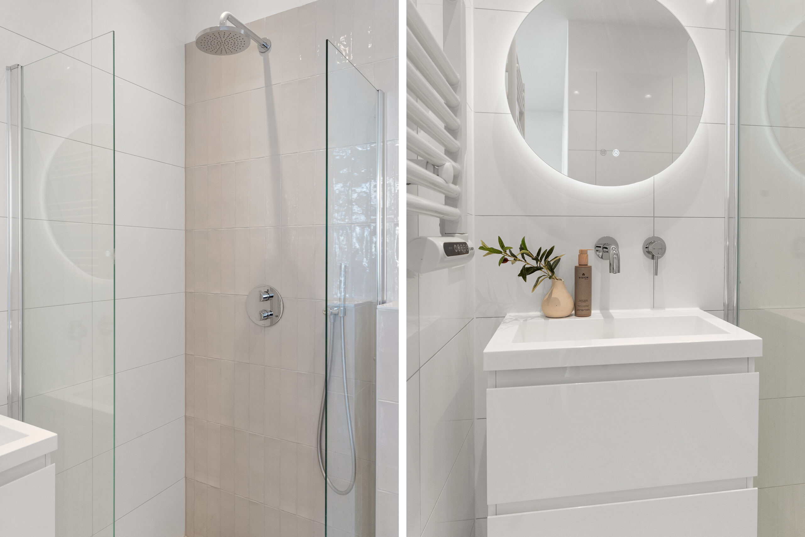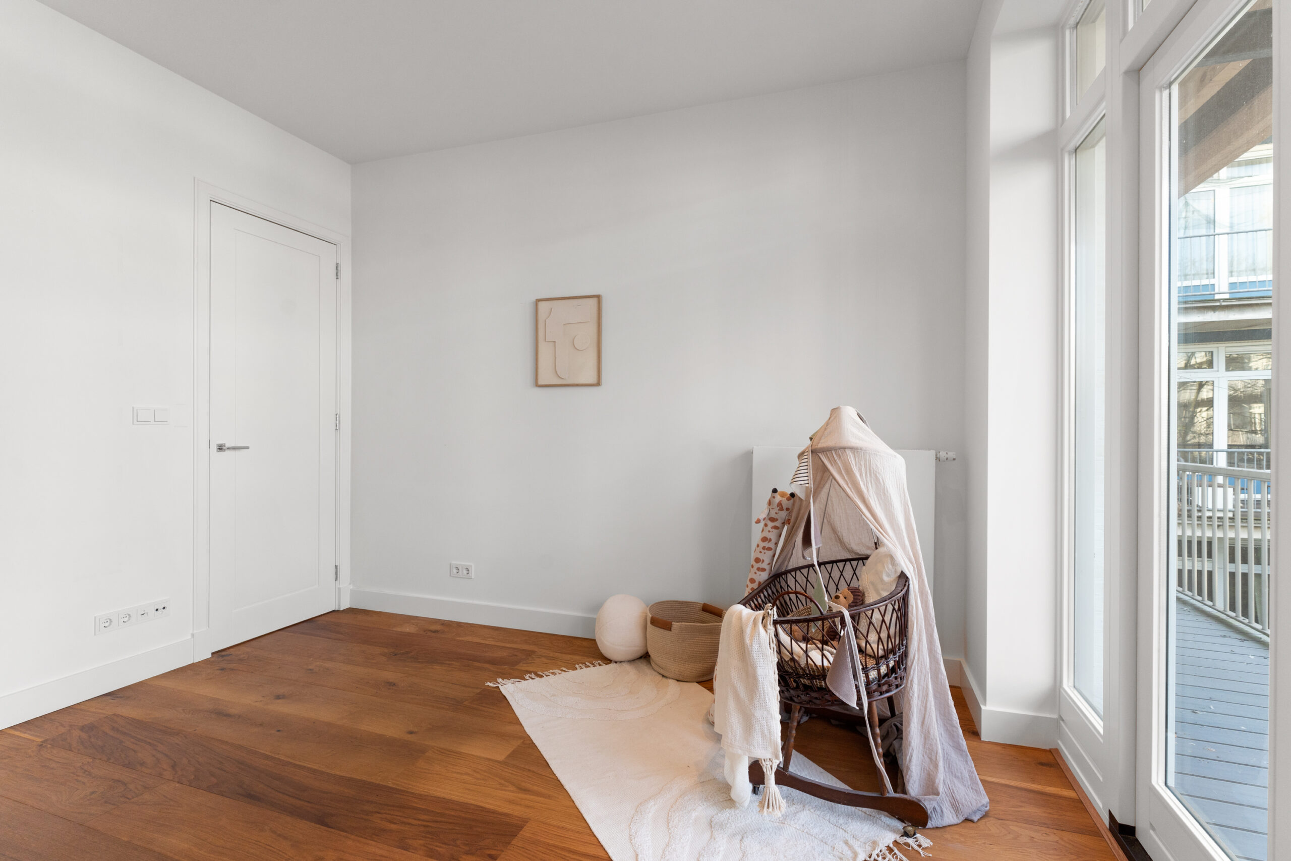 Aan achterzijde zijn twee ruime slaapkamers gesitueerd met aansluitend een balkon van circa 11m² gelegen op het oosten. De master bedroom (circa 14m²) is uitgerust met een luxe badkamer en-suite voorzien van een inloopdouche en een wastafel met inbouwkranen, een toilet en een designradiator. De tweede slaapkamer (circa 14m²) geeft toegang tot een volledig betegelde badkamer met inloopdouche met glazendeur, wastafelmeubel en een designradiator.