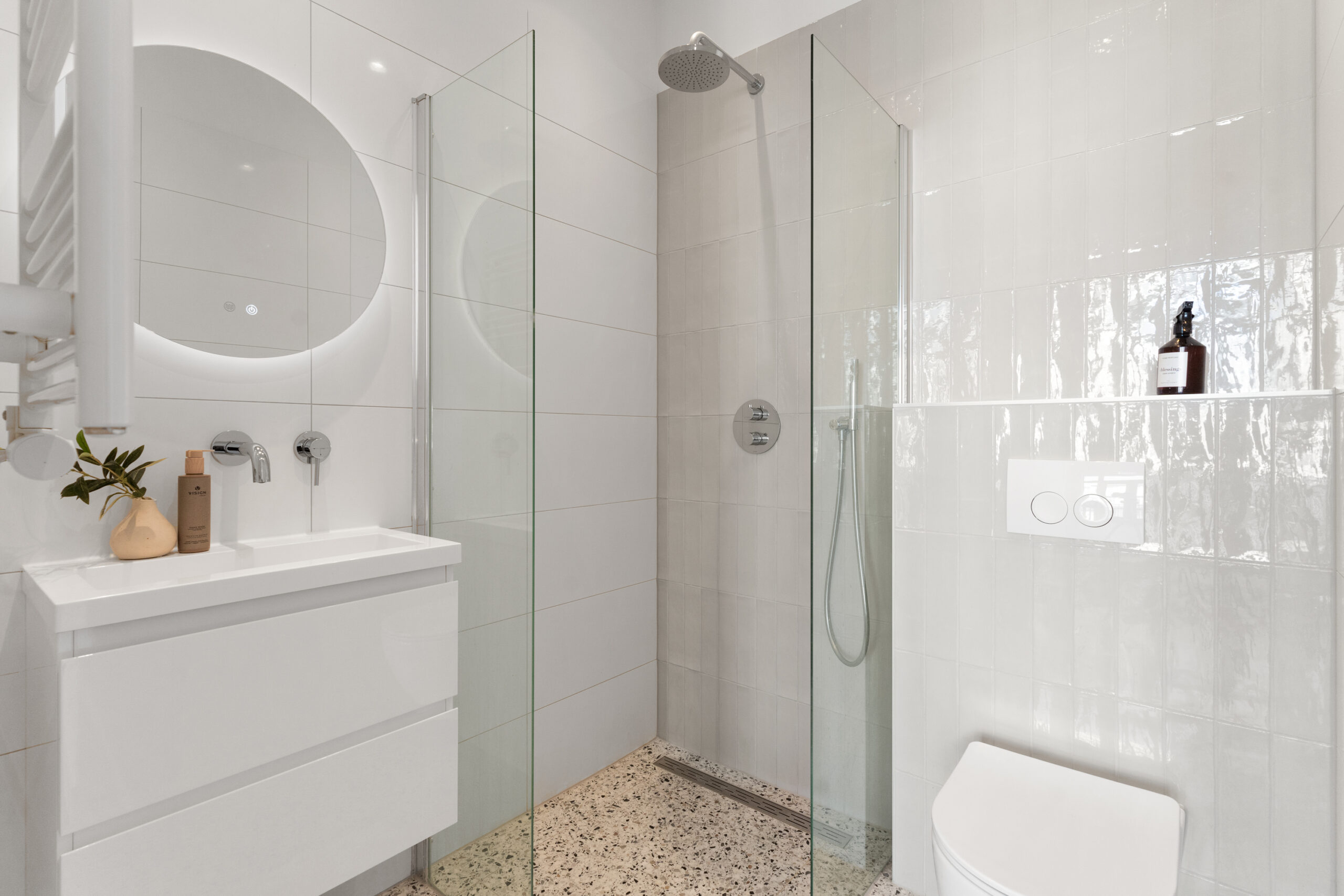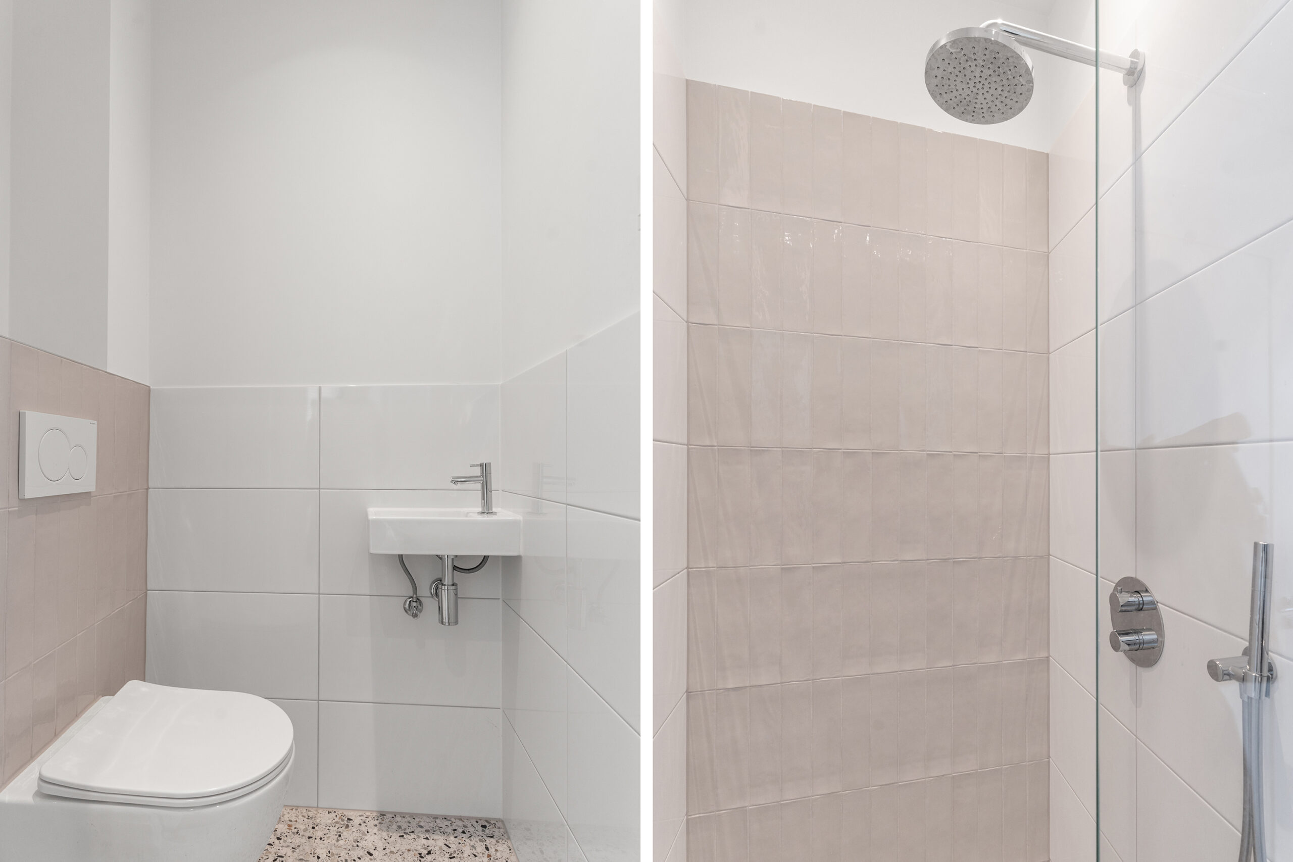 - Badkamervoorzieningen Toilet, wastafel, wastafelmeubel, inloopdouche, wastafel, wastafelmeubel, inloopdouche