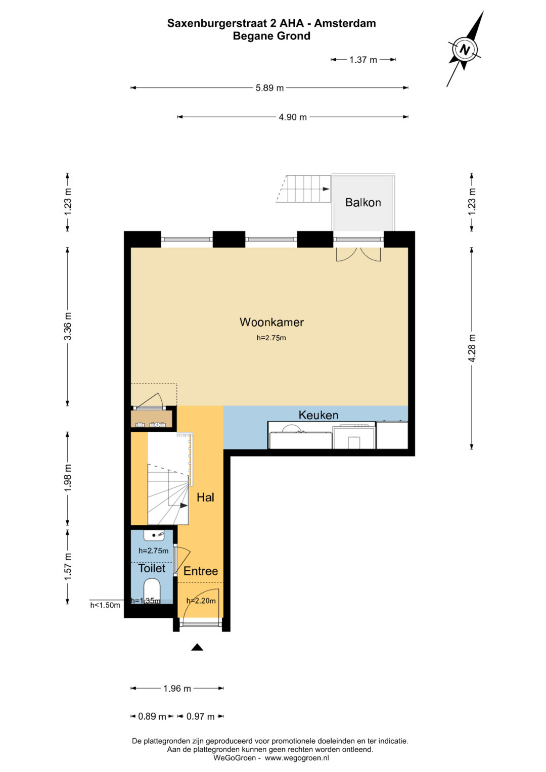 Hal voorzien van garderoberuimte en (bovengelegen) bergruimte. Separaat toilet. Ruime living met open keuken gelegen aan de achterzijde van het pand. De keuken is voorzien van een 4-pits gasfornuis, een afzuigkap, een combi oven -/ magnetron, een koelkast incl. vriesvak, een vaatwasser en een CV-opstelling. Vanuit de woonkamer is met behulp van dubbele deuren en via een houten trap de stadstuin te bereiken. Een verzorgde buitenruimte gesitueerd op het westen en voorzien van een bergkast en een elektra-aansluiting. Vanuit de hal bij de entree van de woning is de trap naar het souterrain.
