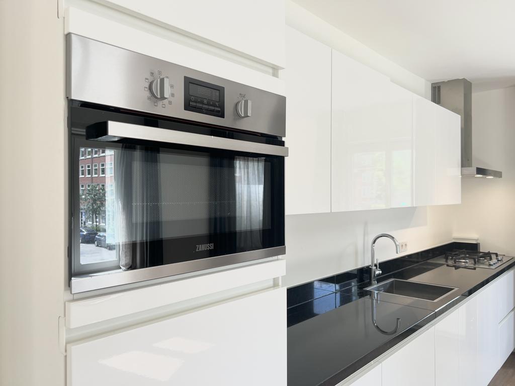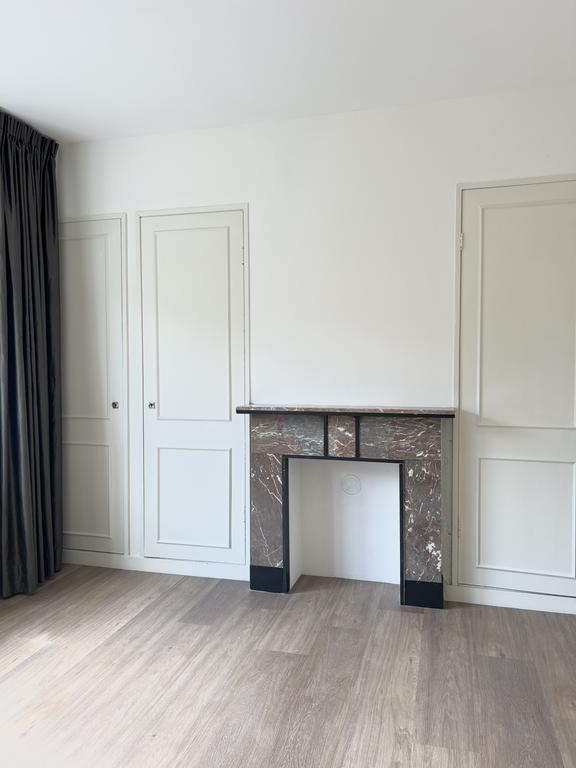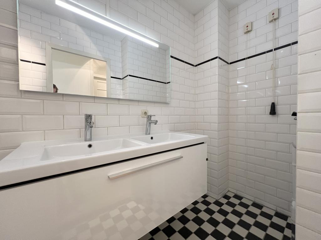Through the staircase you reach the entrance of this apartment on the first floor. Upon entering you arrive in a spacious hall that gives access to all rooms. At the front of the apartment you will find the spacious living room with open kitchen. The amount of light through the many windows is exceptional! The luxury kitchen is equipped with a 5-burner gas stove, combi microwave, extractor hood, dishwasher, large fridge with freezer and sufficient cupboard space.