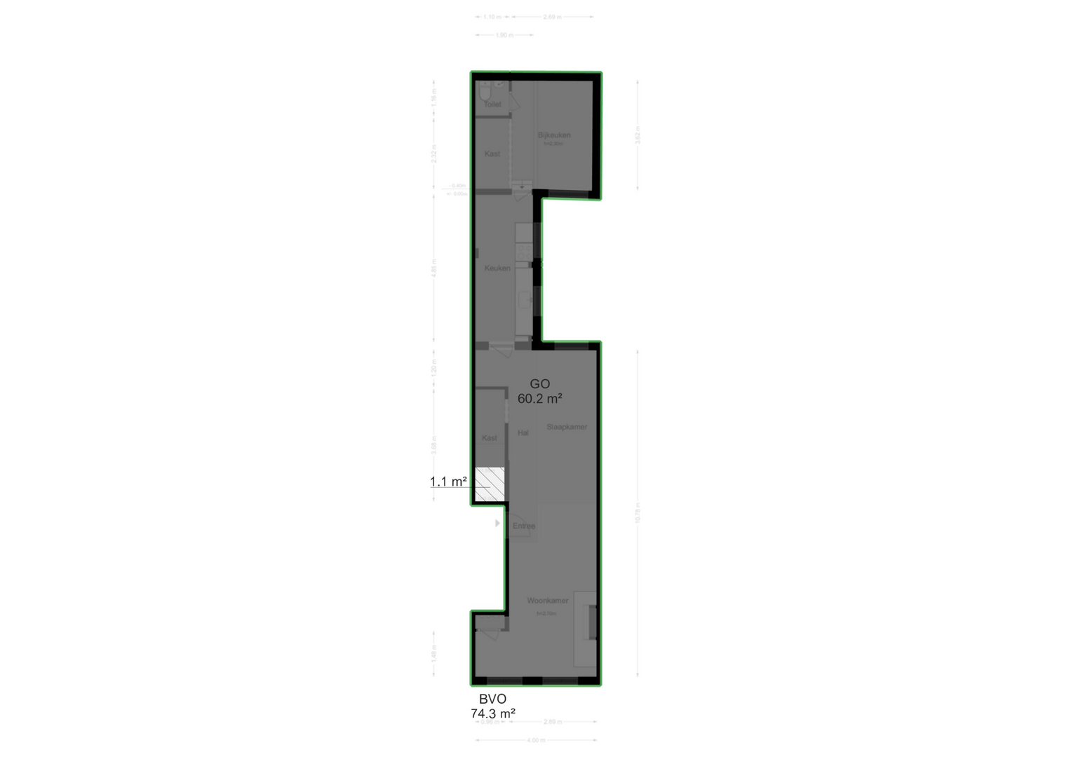 – Lichte (casco) bovenwoning van circa 60 m² (meetrapport beschikbaar);
