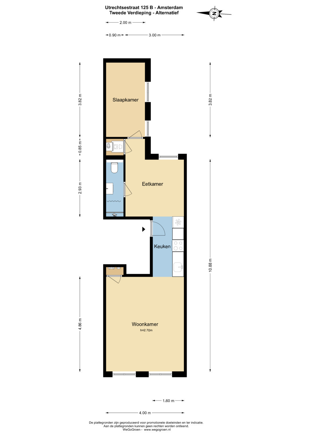 Graag verwijzen wij naar de alternatieve plattegrond voor een mogelijke indeling met 3 kamers.