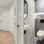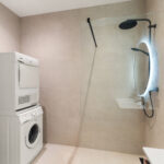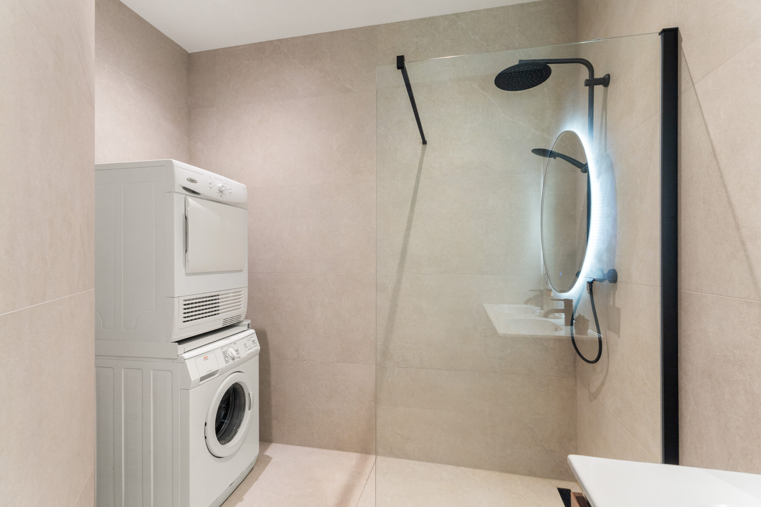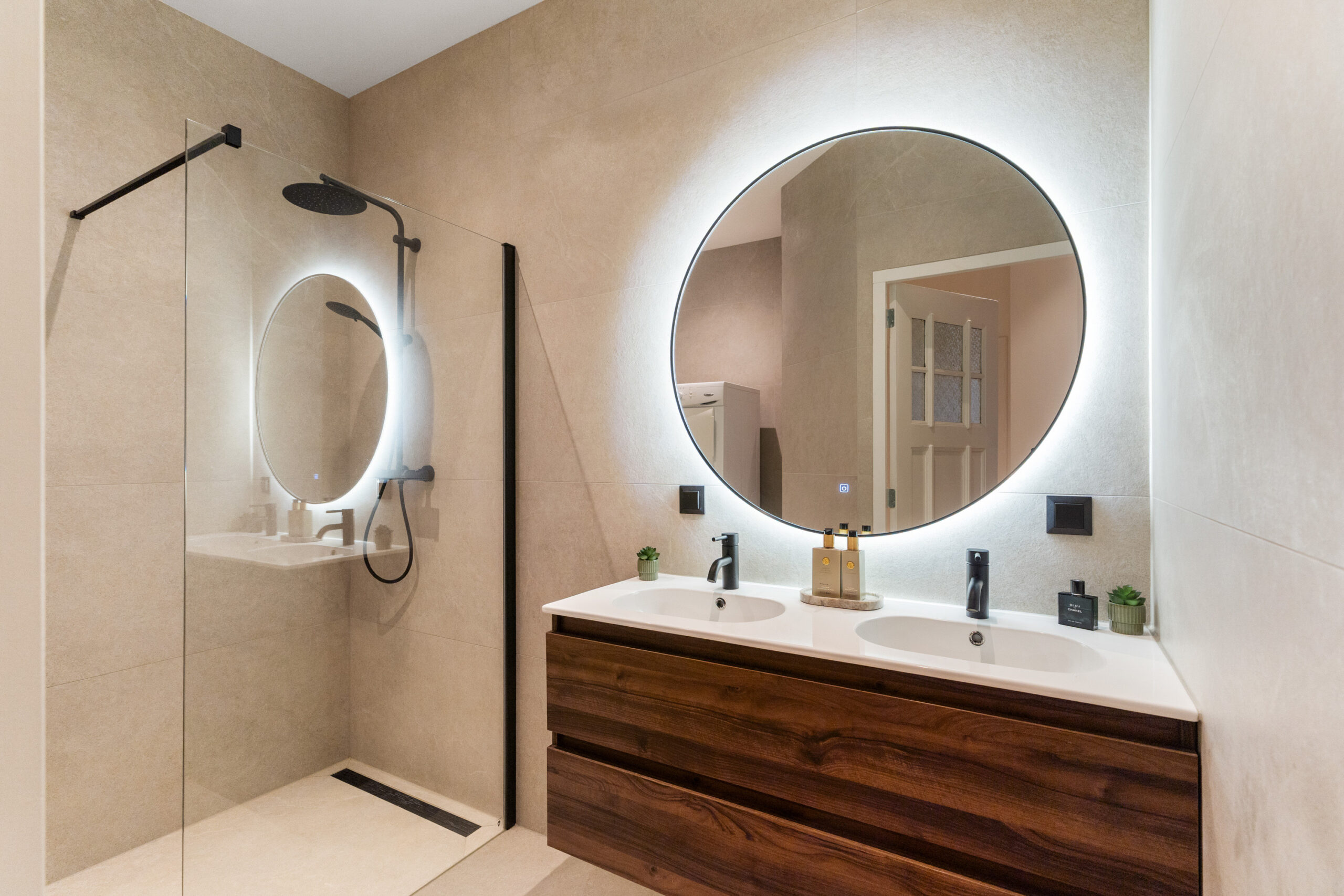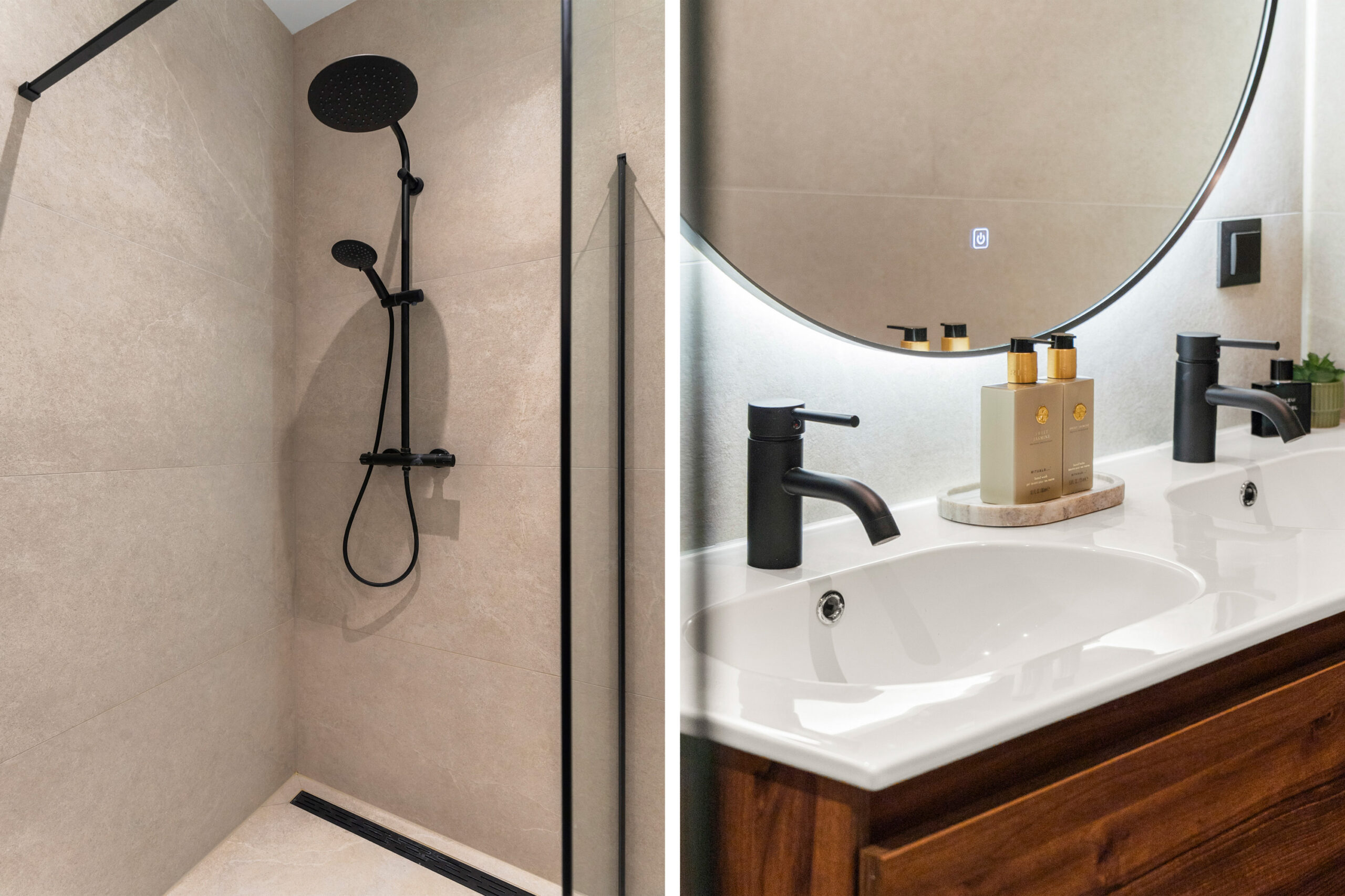 - Badkamervoorzieningen Dubbele wastafel, wastafel, wastafelmeubel, inloopdouche, wasmachineaansluiting